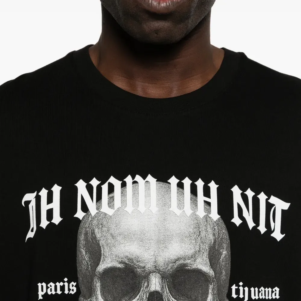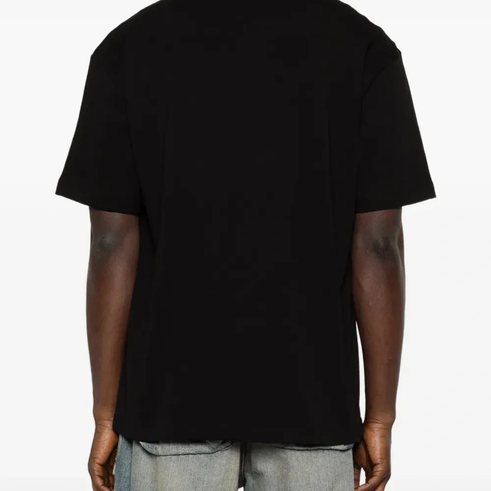 черная футболка с графическим принтом, круглым вырезом и короткими рукавами