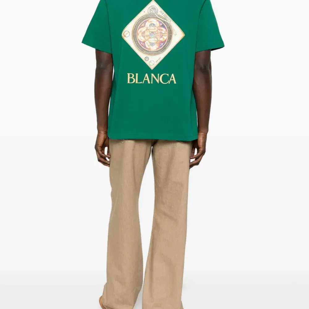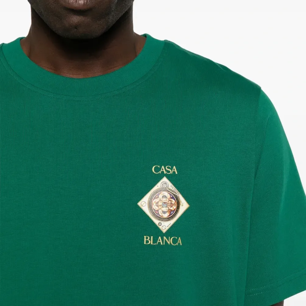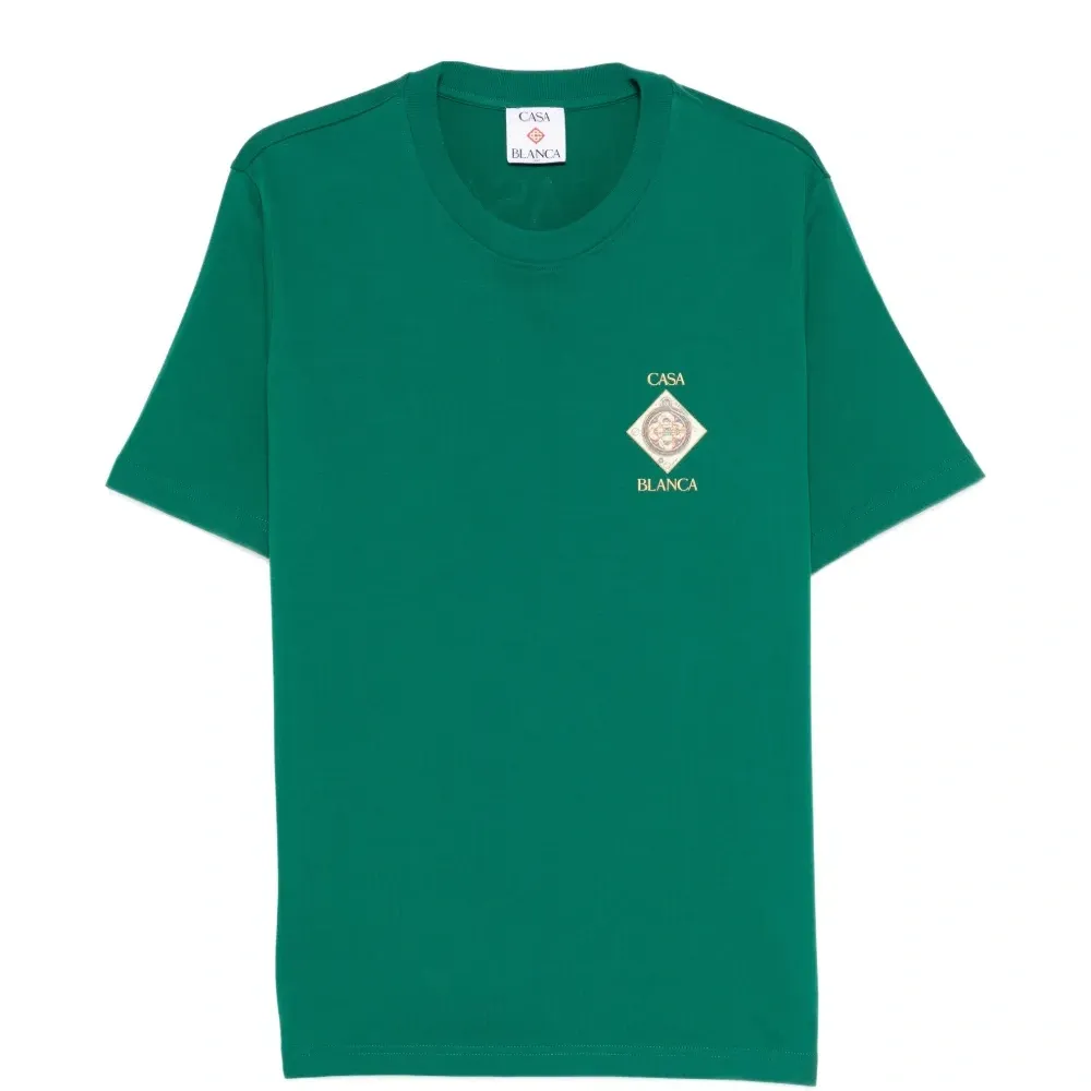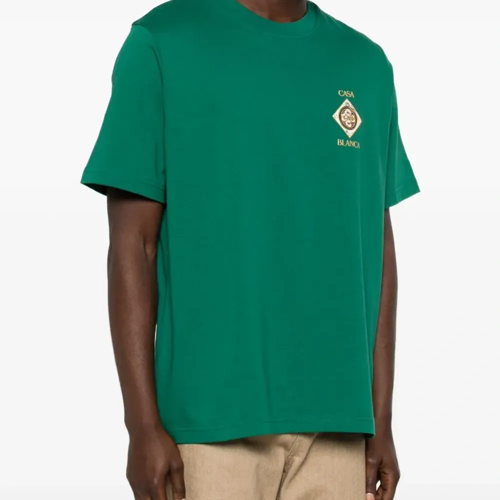 зелёная футболка с круглым вырезом, короткими рукавами и принтом-логотипом