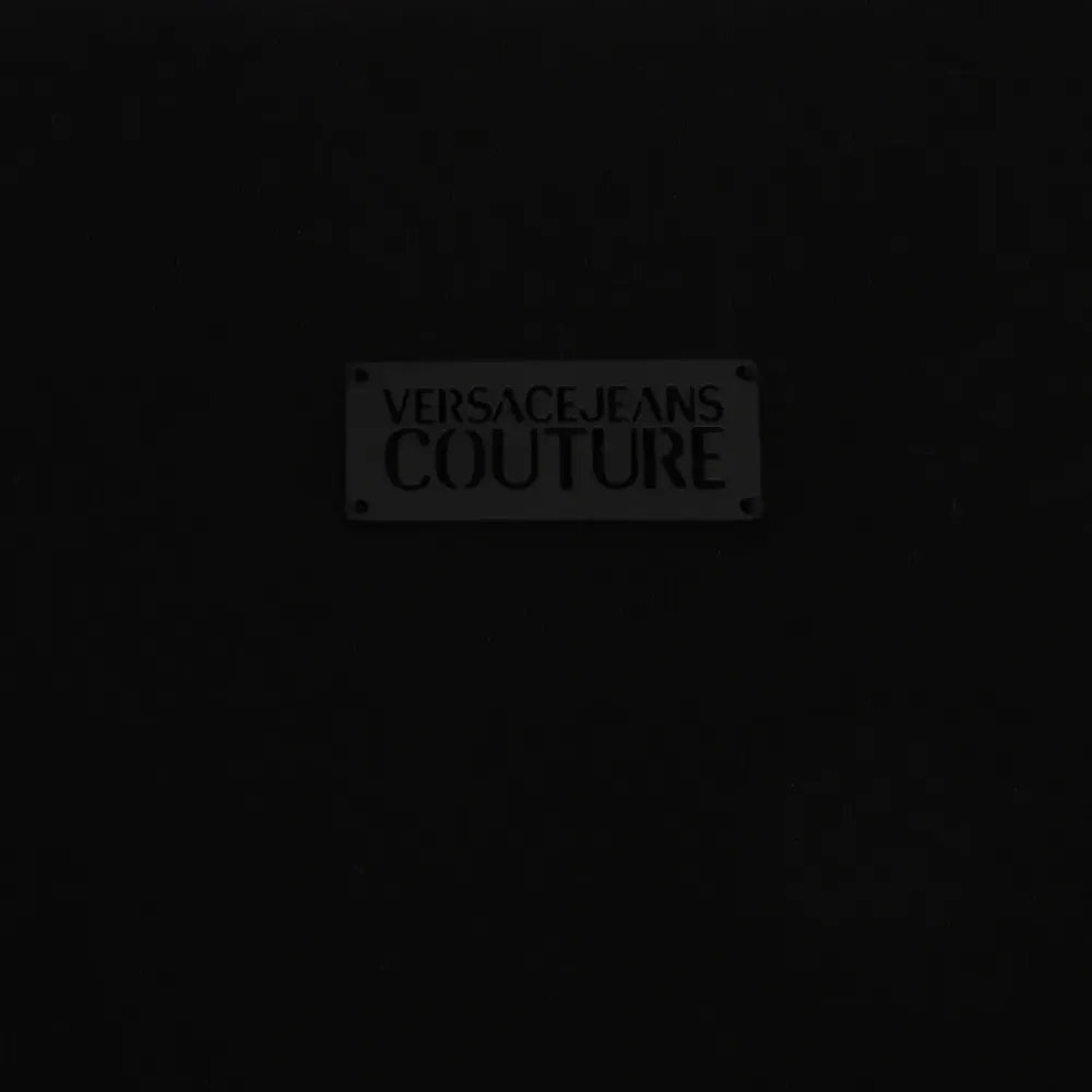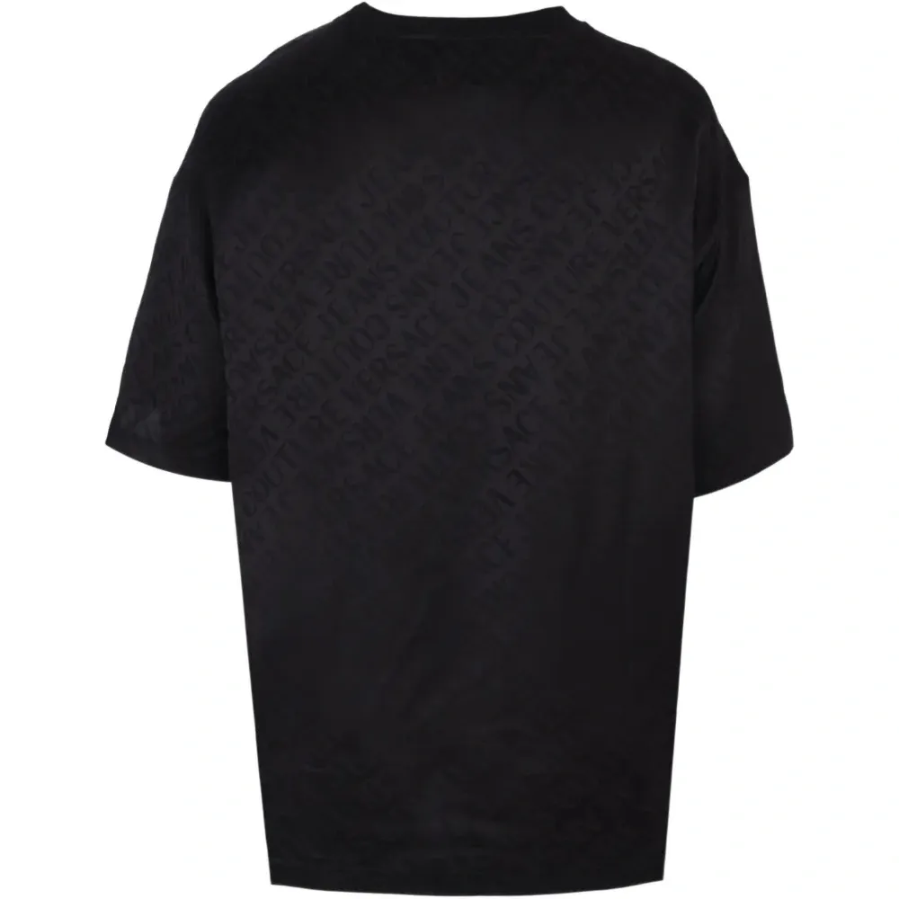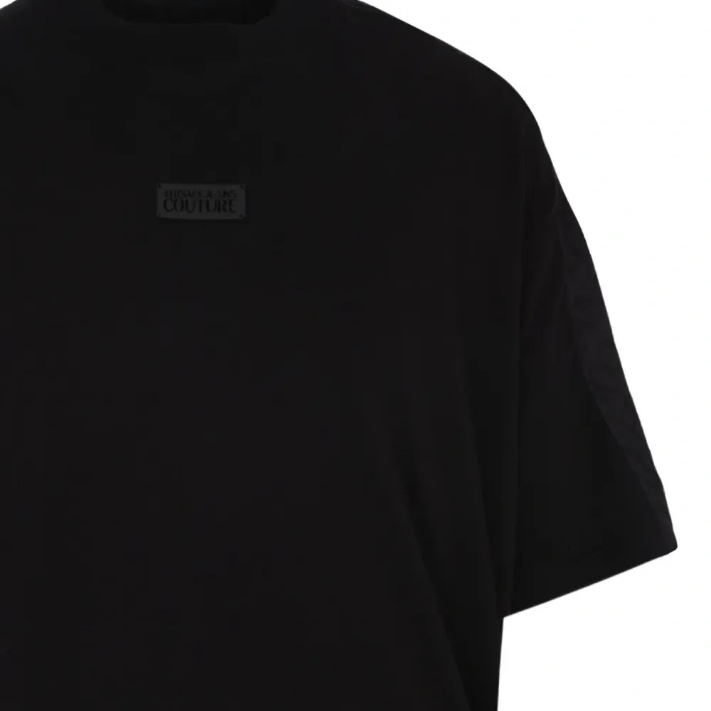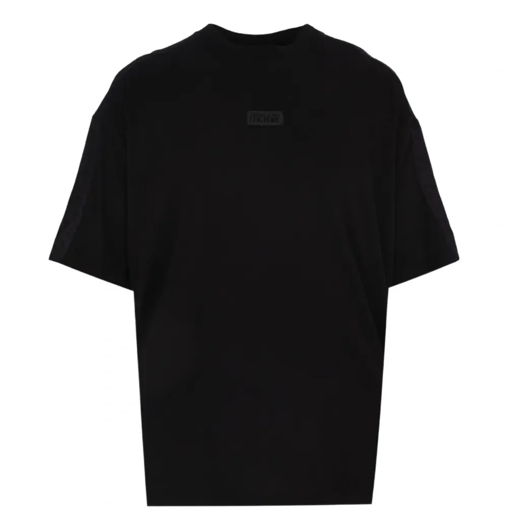 черная хлопковая футболка с жаккардовой отделкой, нашивкой с логотипом, короткими рукавами и круглым вырезом