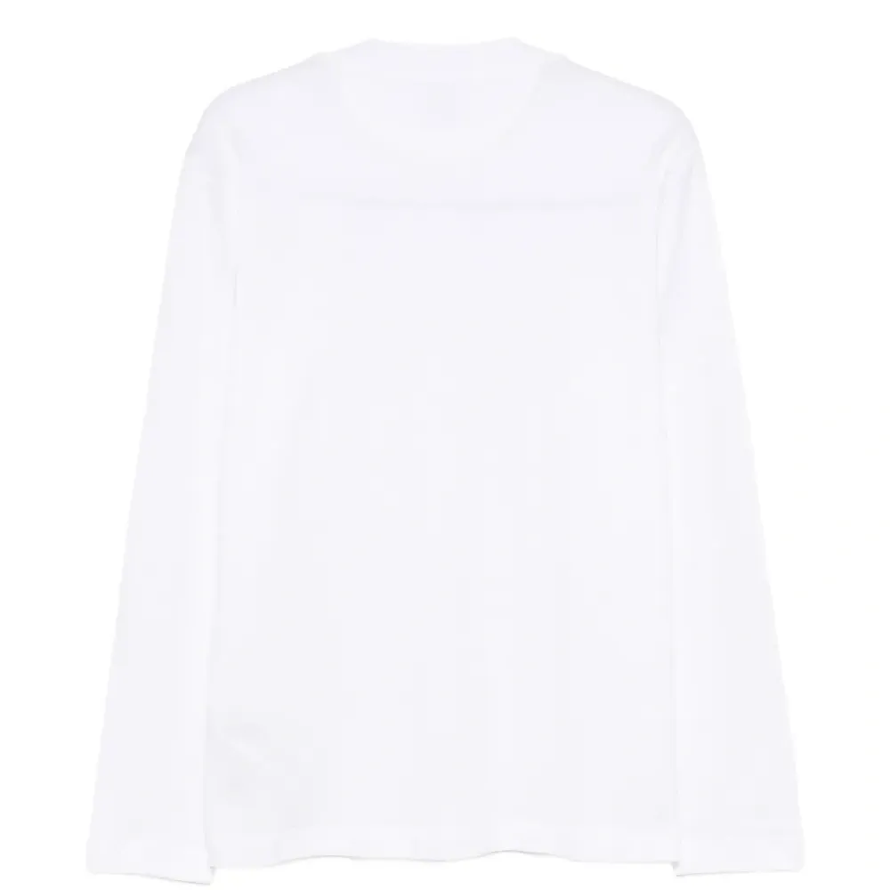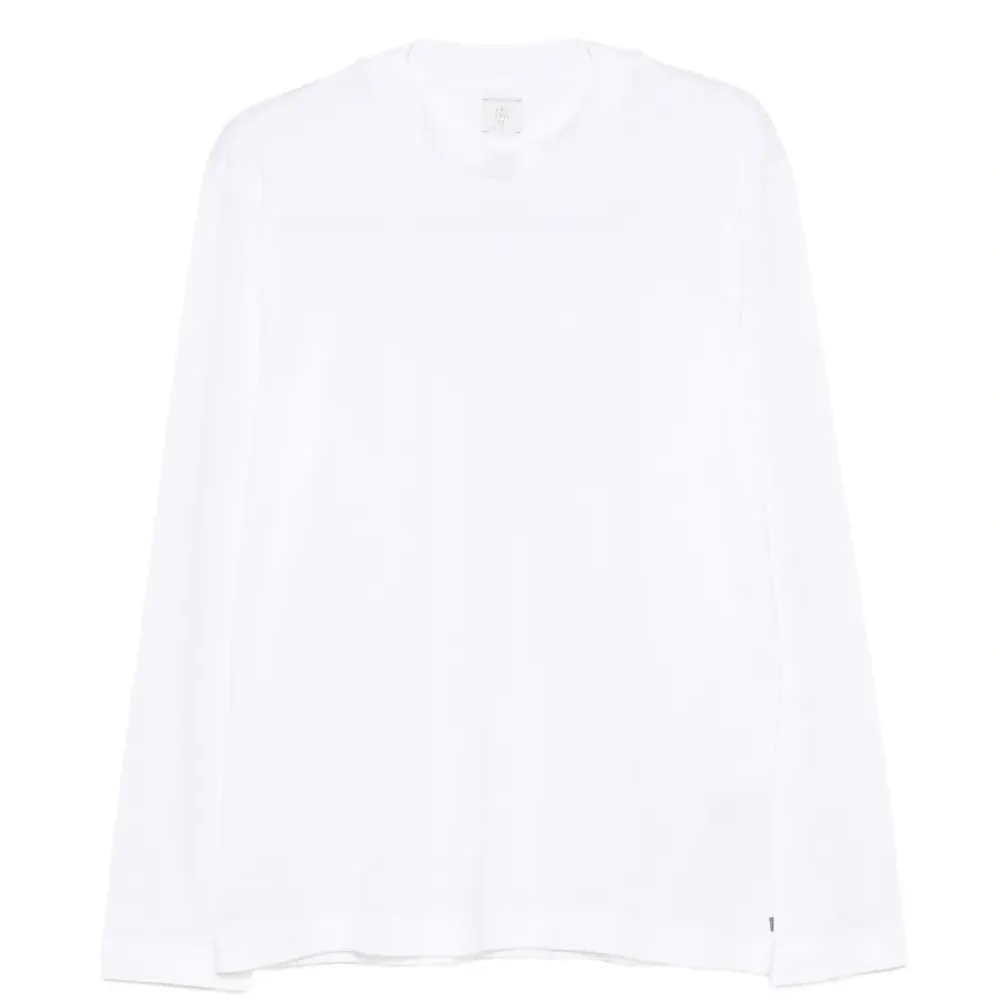 белый лонгслив с однотонной строчкой и круглым вырезом