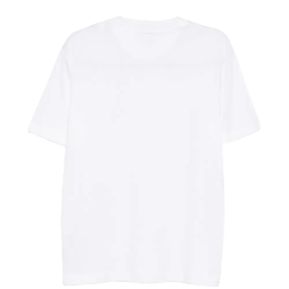 белая хлопковая футболка с круглым вырезом и короткими рукавами