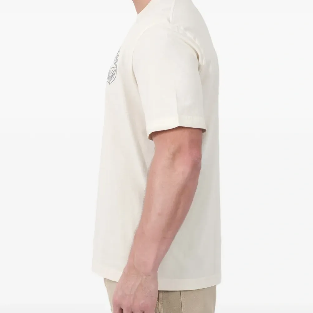 слоновая кость, белый, принт с логотипом, круглый вырез, короткие рукава, прямой низ