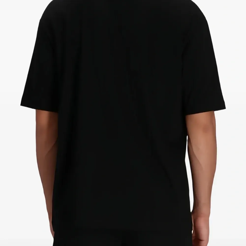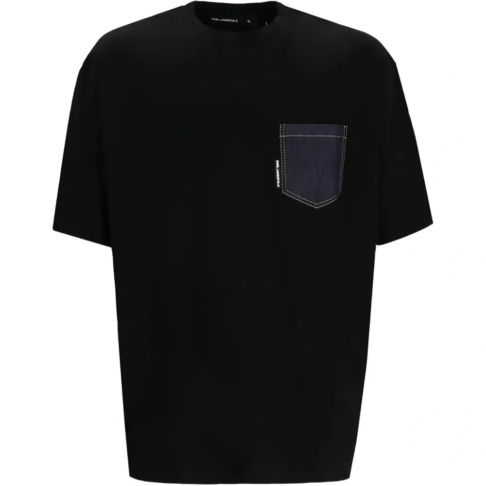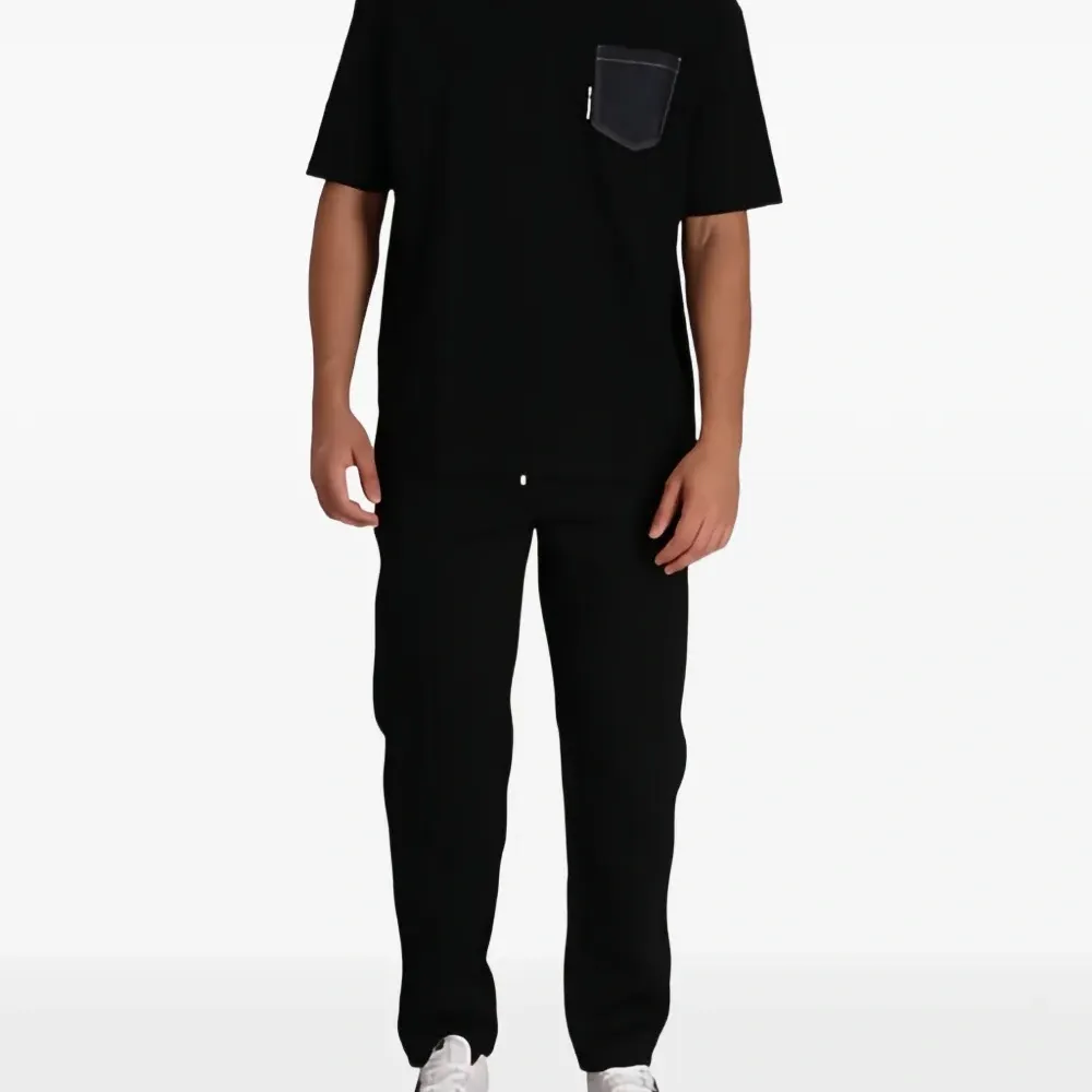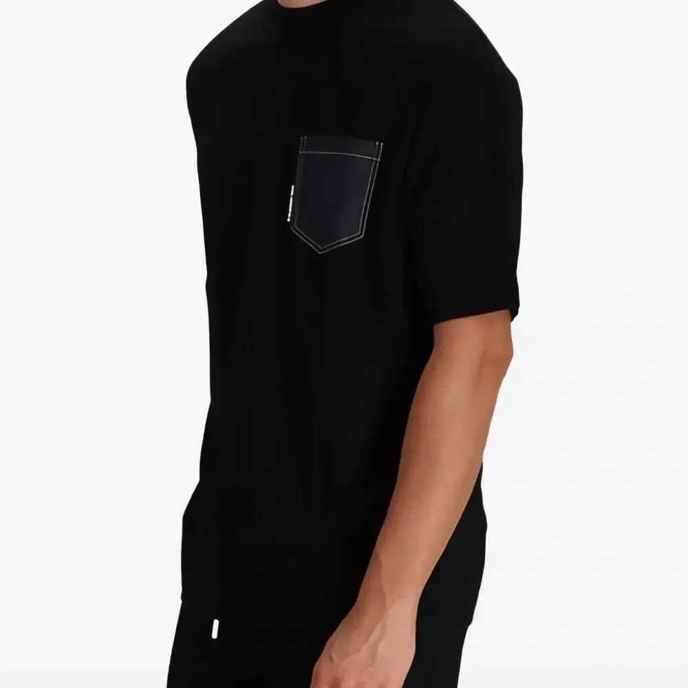 чёрная футболка с круглым вырезом, короткими рукавами и нагрудным карманом