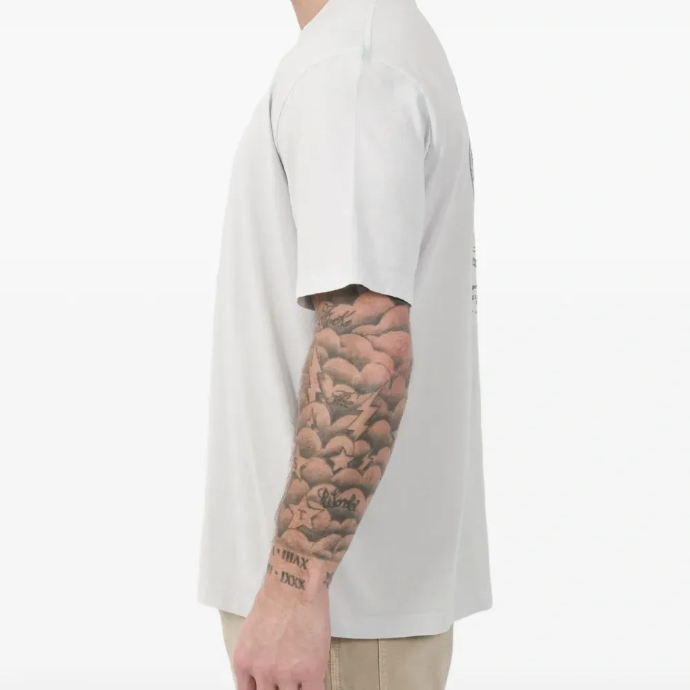 небесно-голубая футболка с принтом логотипа, круглым вырезом и короткими рукавами
