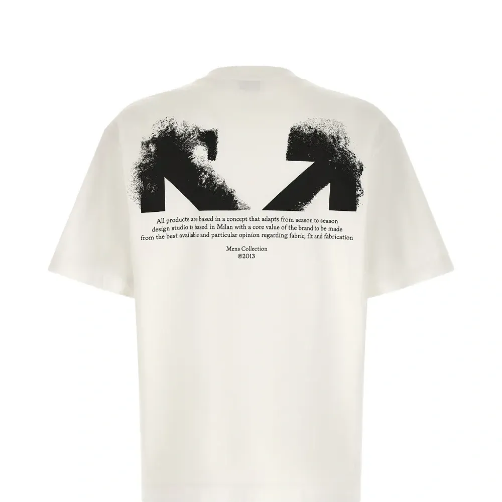 белая футболка с логотипом, круглым вырезом, короткими рукавами, разрезами по бокам, из хлопка