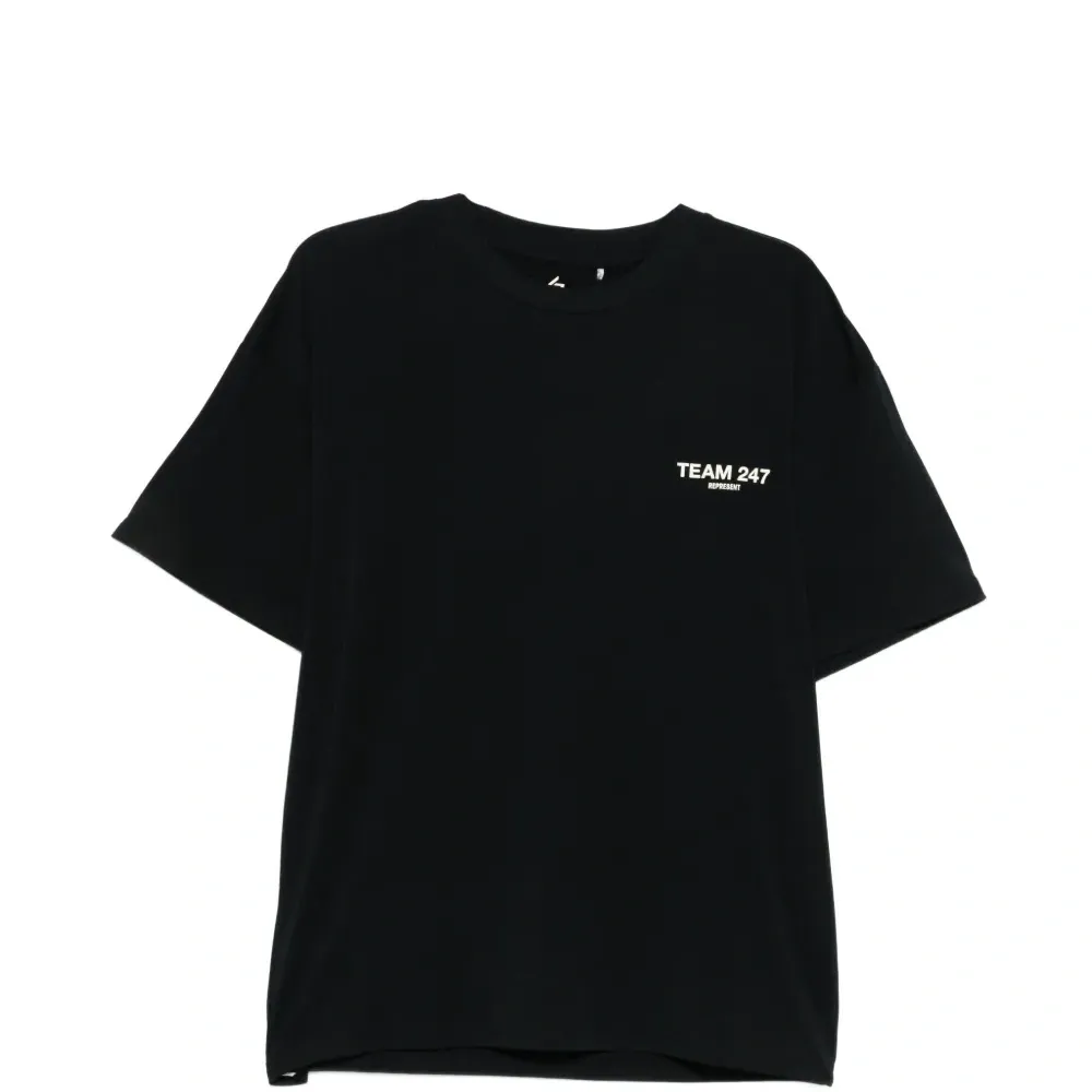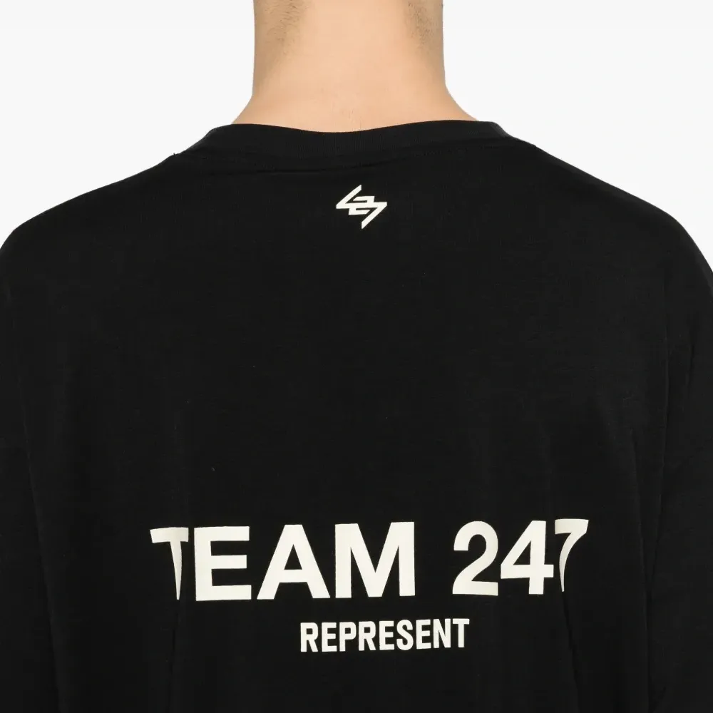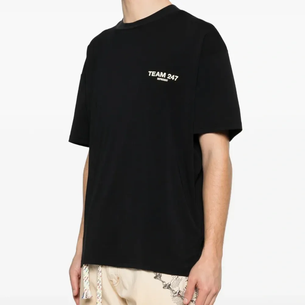 черная футболка с круглым вырезом и короткими рукавами с принтом-логотипом