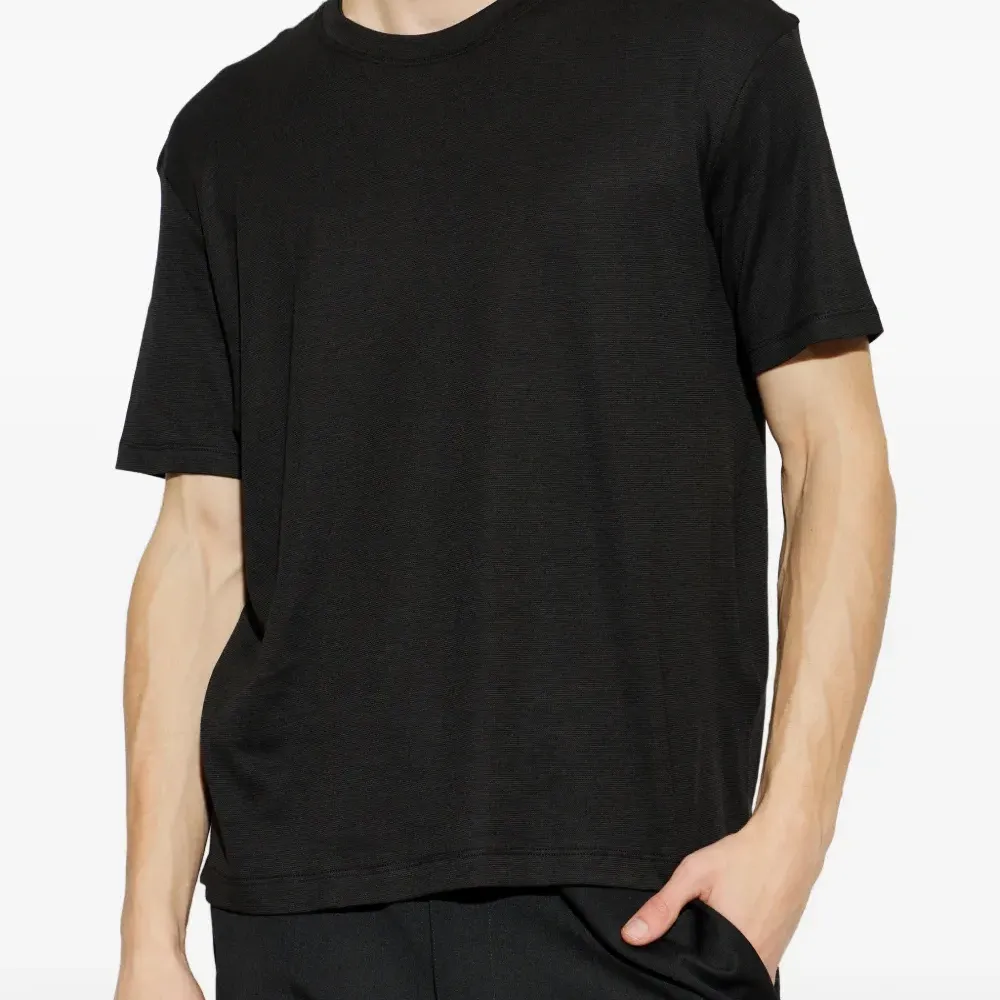 черная хлопковая футболка с круглым вырезом и короткими рукавами