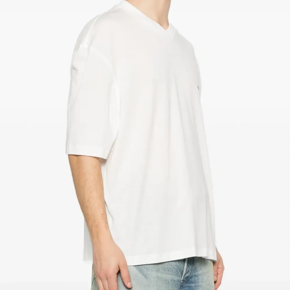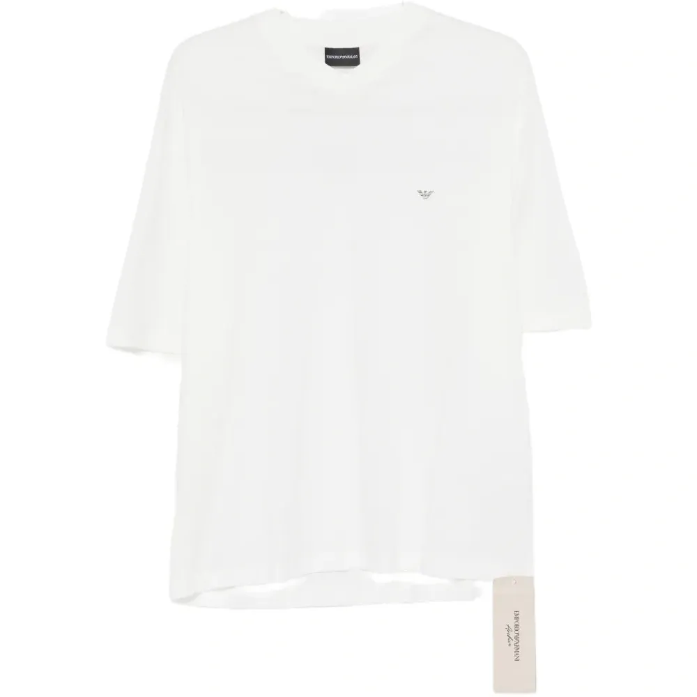 белая футболка с круглым вырезом, логотипом и короткими рукавами