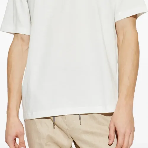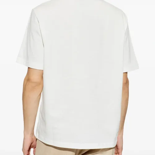 белая футболка из органического хлопка с графичным принтом, круглым вырезом, короткими рукавами и прямым подолом