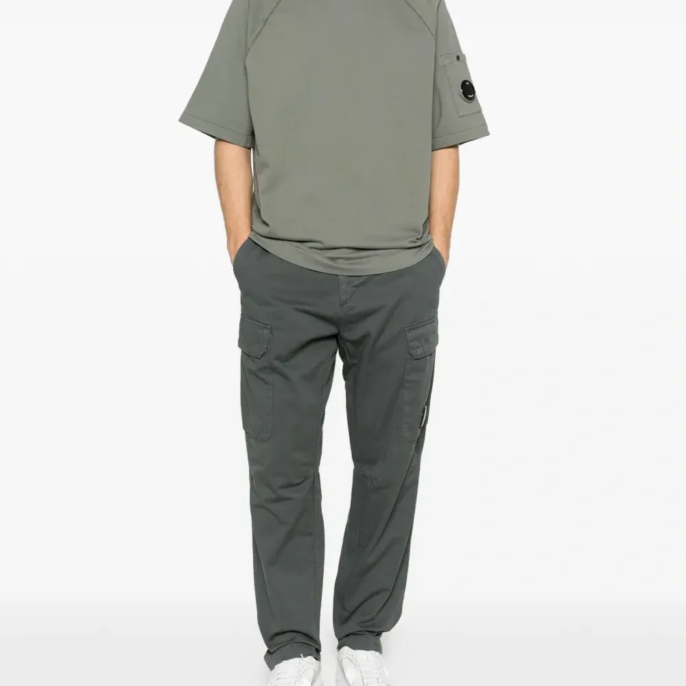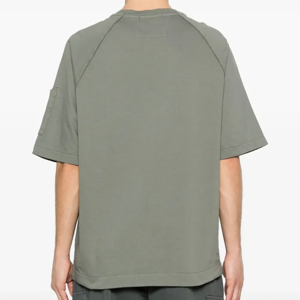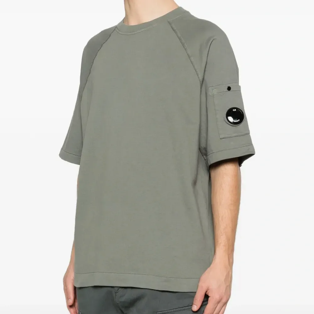 серый цвет, круглый вырез, короткие рукава, накладной карман на рукаве, фирменная линза на кармане, однотонная строчка. C.P. Company рекомендует снимать все съемные аксессуары перед стиркой.