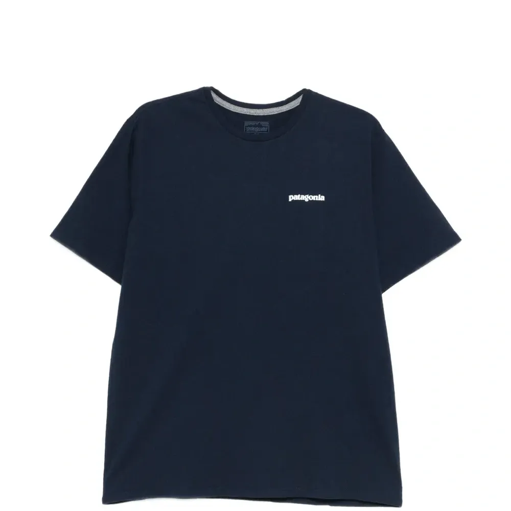 тёмно-синий цвет, графический принт на спине, круглый вырез, короткие рукава
