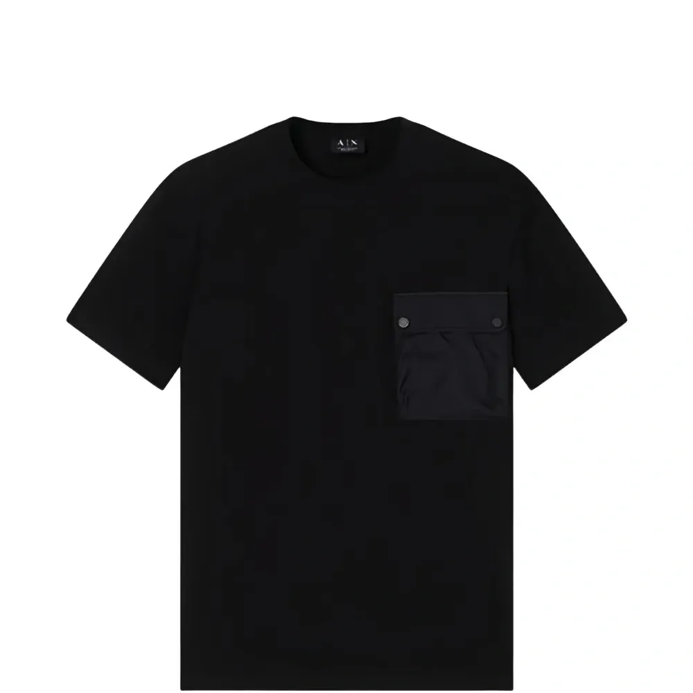 черная футболка с круглым вырезом и нагрудным карманом
