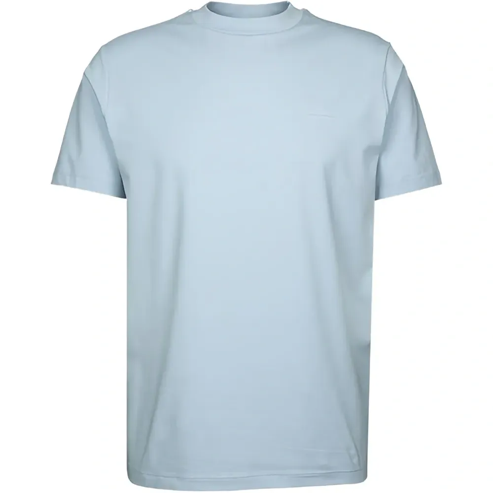 светло-голубая футболка с круглым вырезом и короткими рукавами