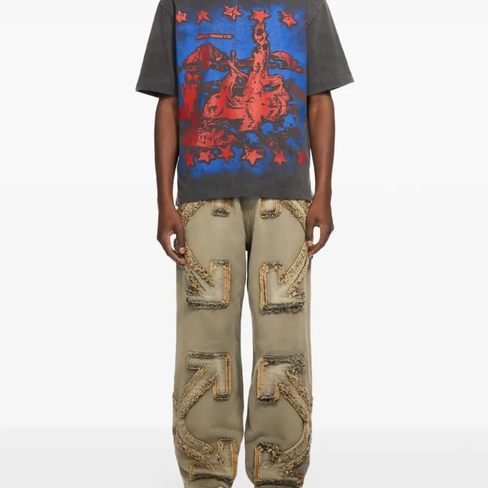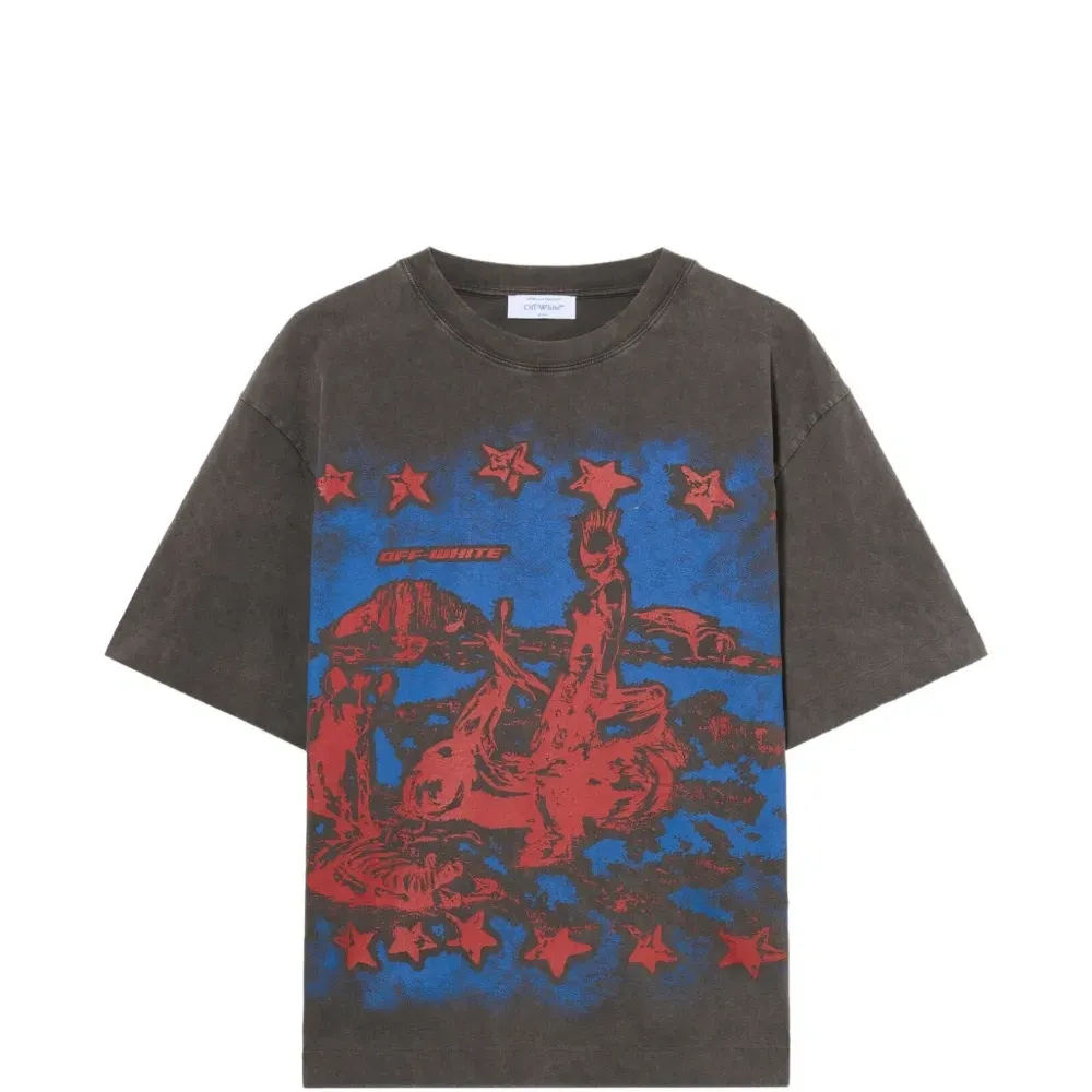 чёрная хлопковая футболка с графическим принтом, круглым вырезом и короткими рукавами