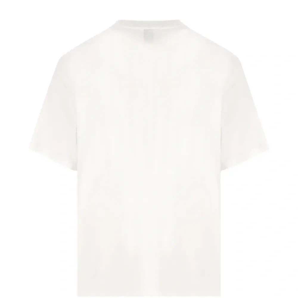 белая футболка с круглым вырезом, короткими рукавами и вышитым логотипом