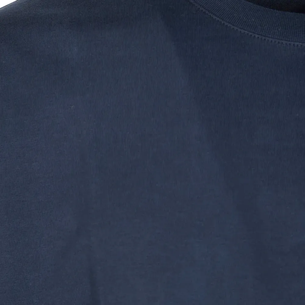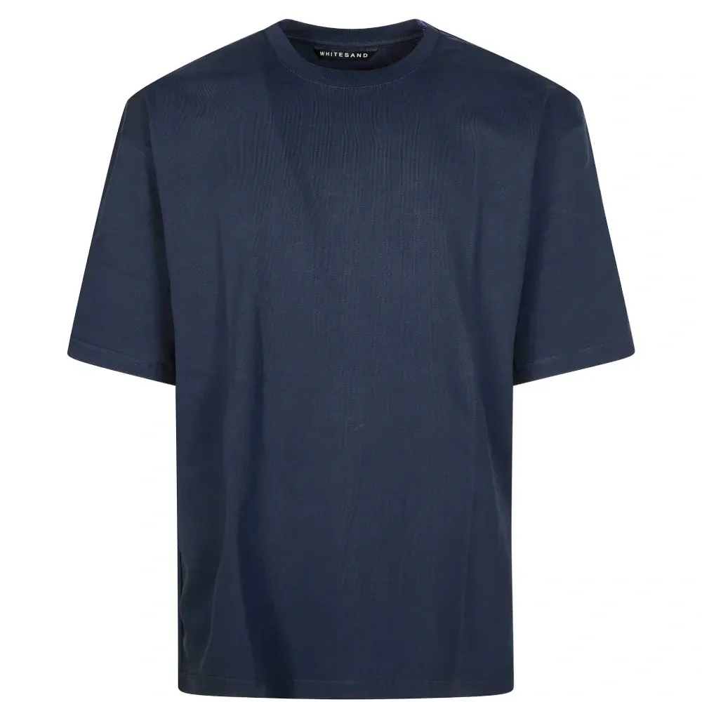 синий цвет, круглый вырез, короткие рукава, однотонная строчка, нашивка сзади