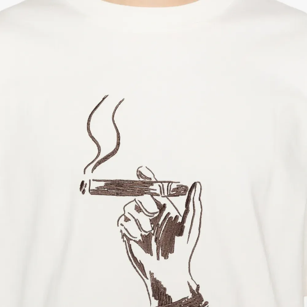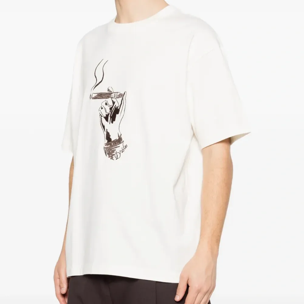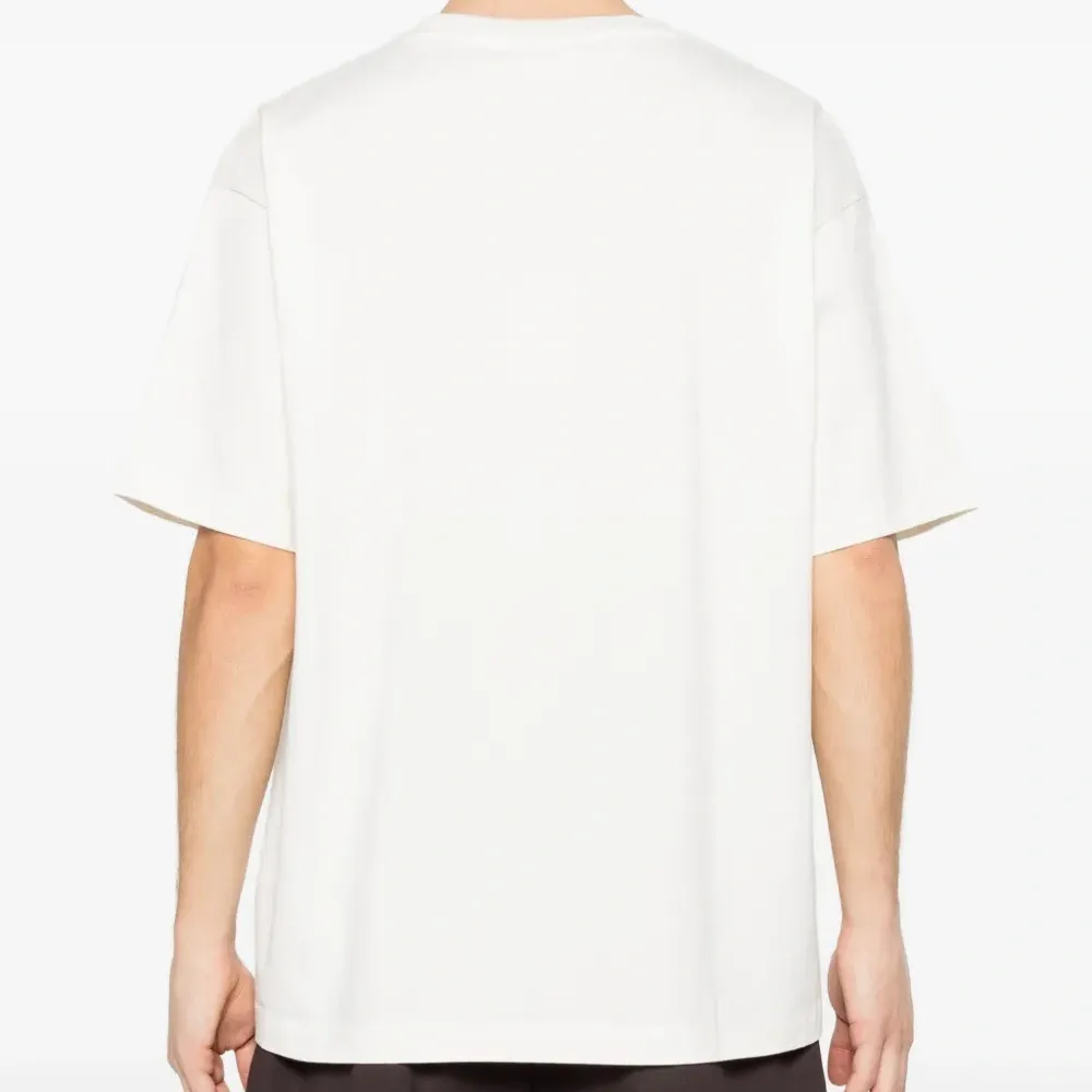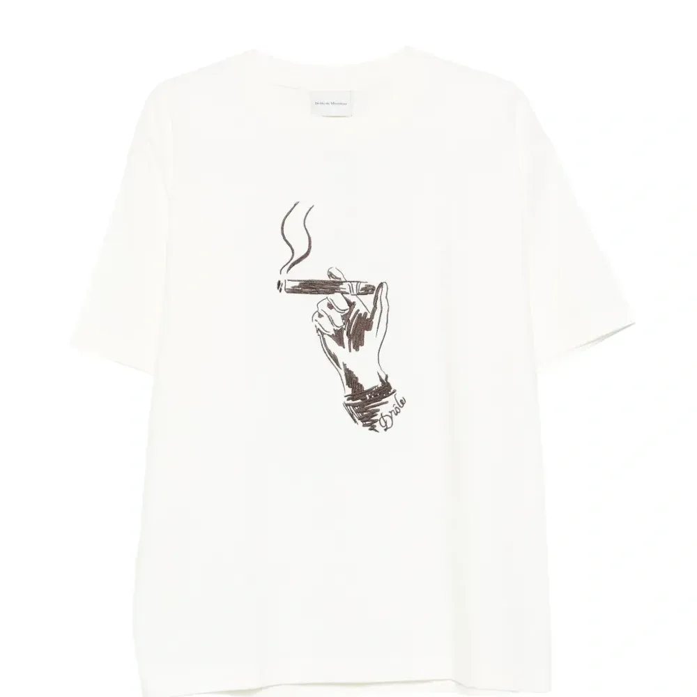 белая футболка с графическим принтом, круглым вырезом и короткими рукавами