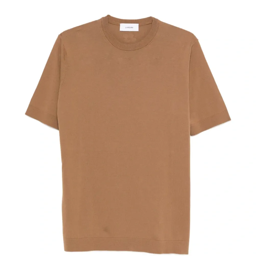 коричневый круглый вырез, короткие рукава, прямой низ