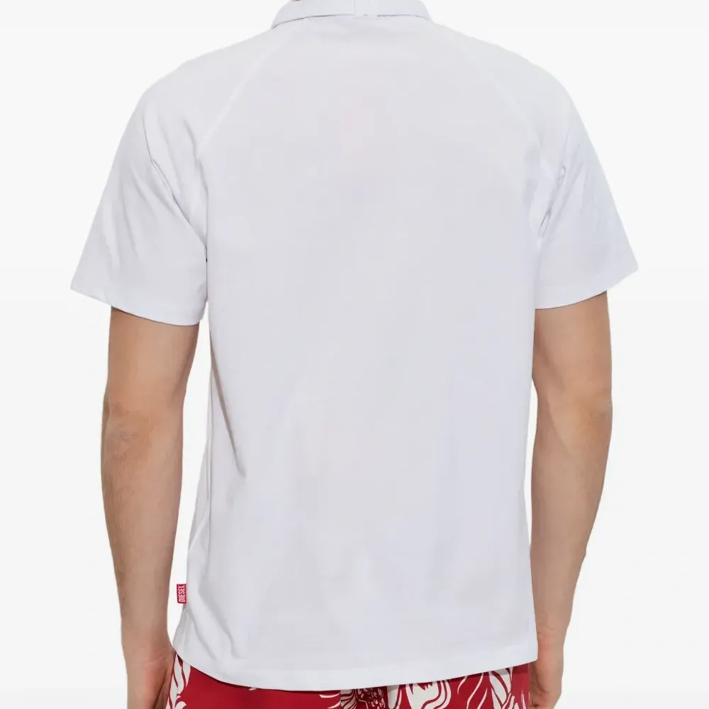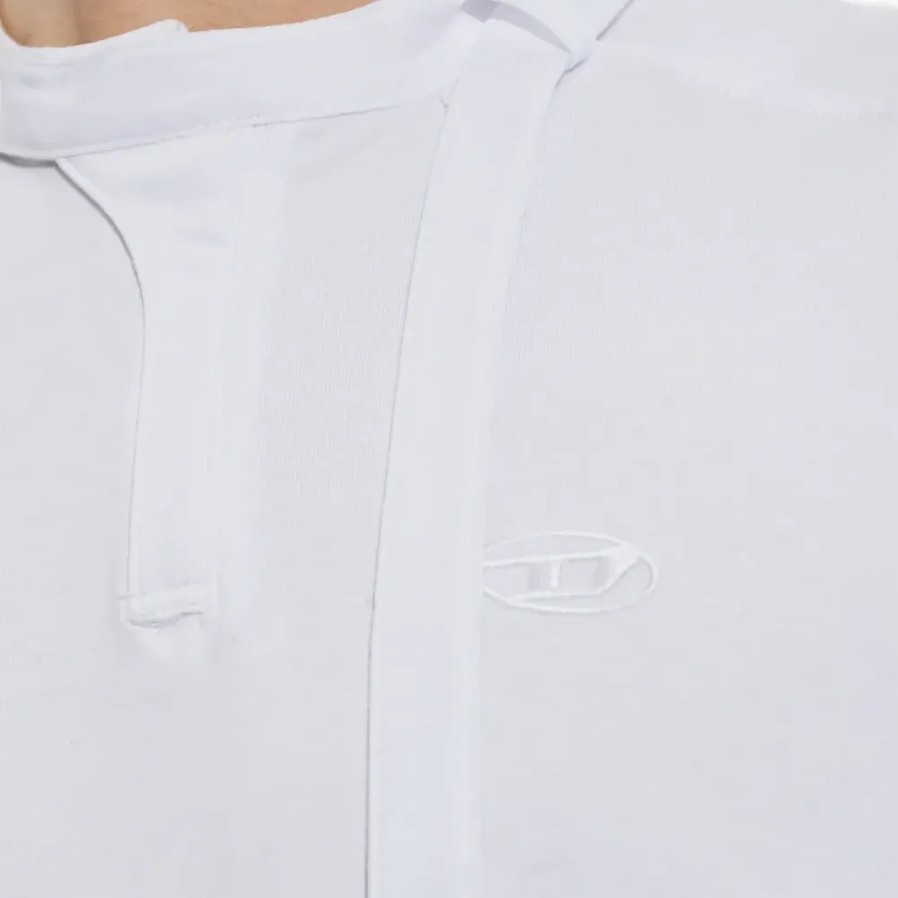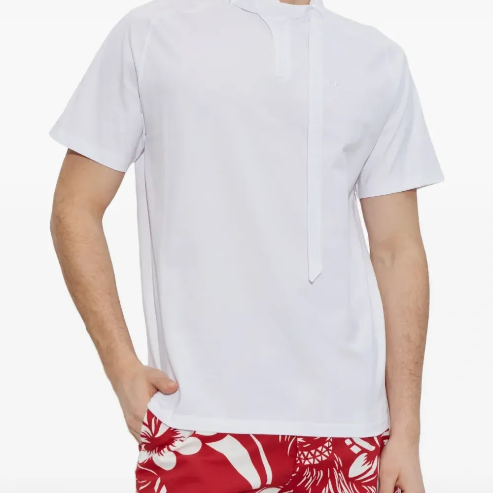 белый хлопковый топ с короткими рукавами, завязками, вышитым логотипом и воротником-стойкой
