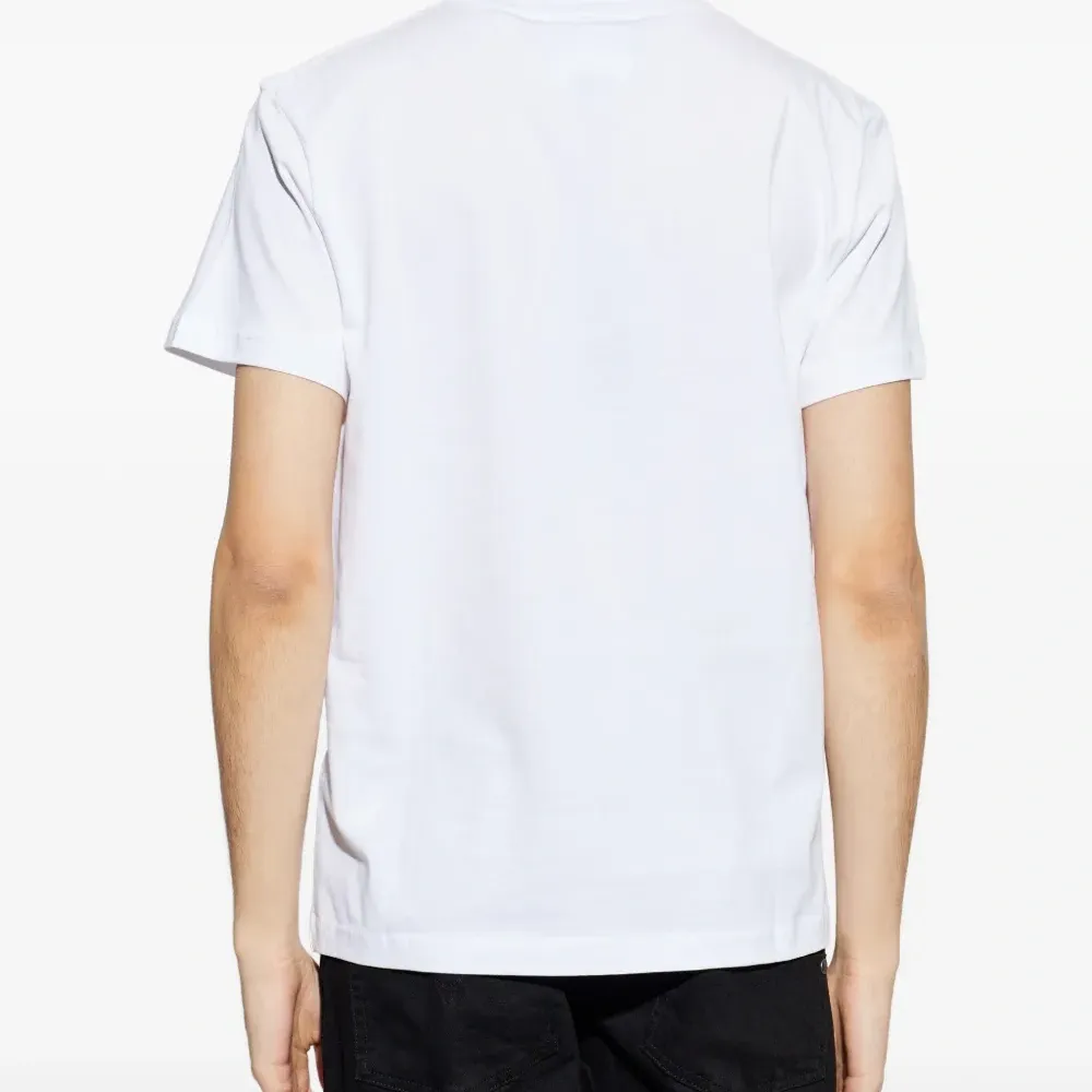 белая хлопковая футболка с круглым логотипом на груди и круглым вырезом