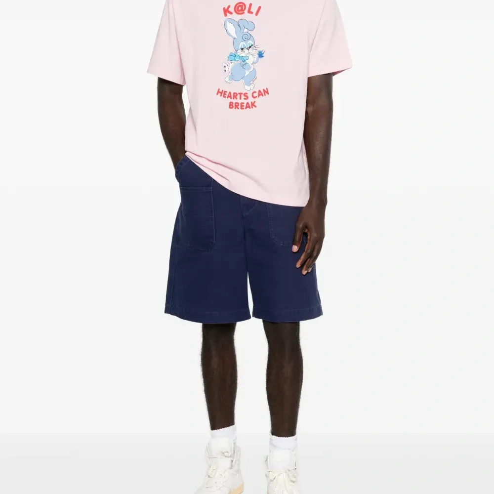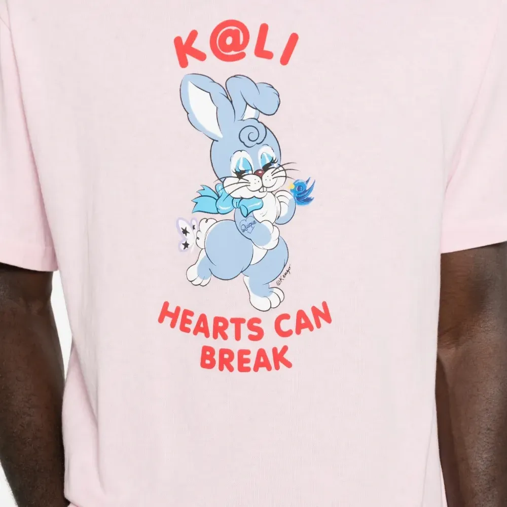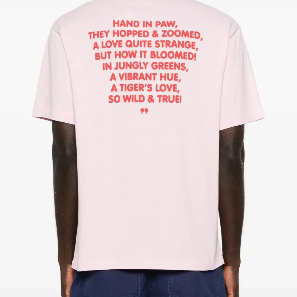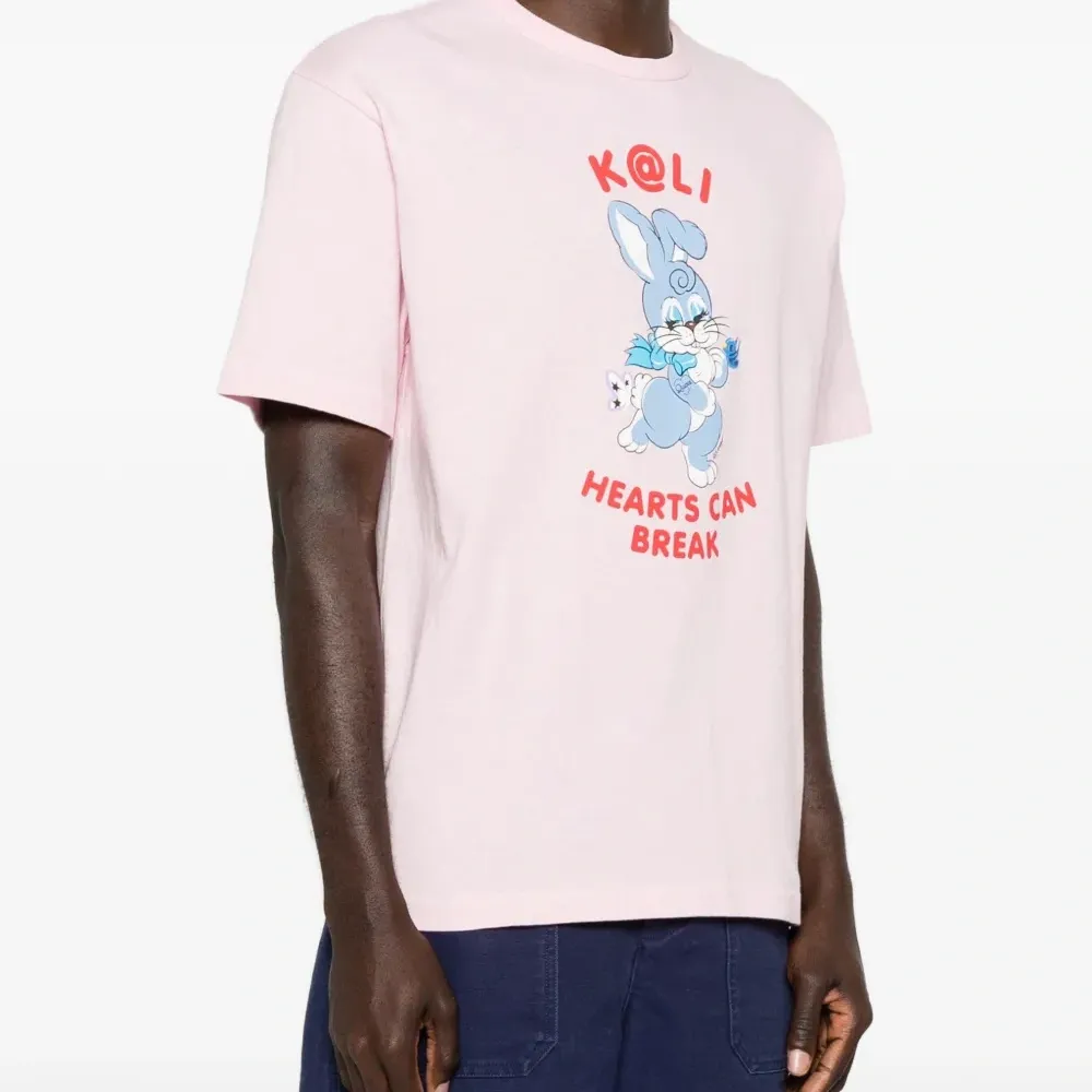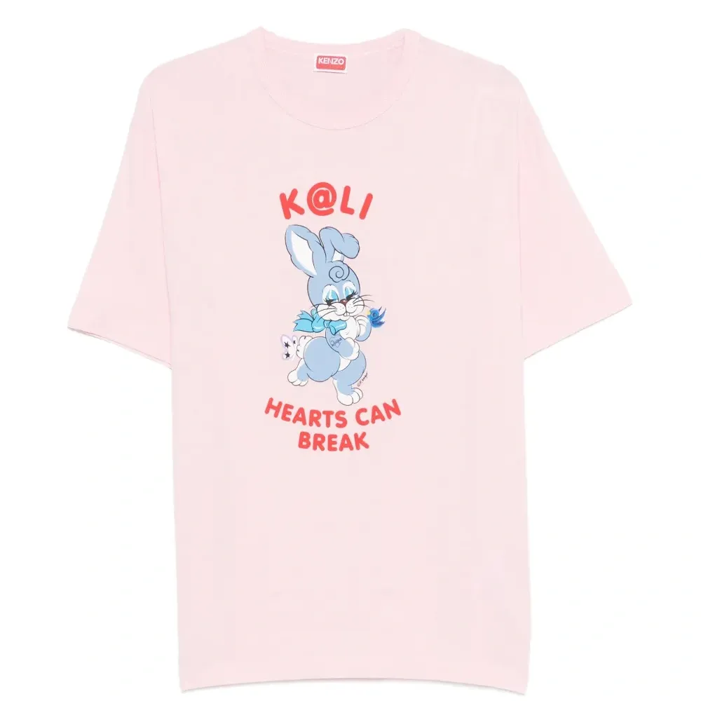 светло-розовая футболка с графическим принтом, круглым вырезом и короткими рукавами