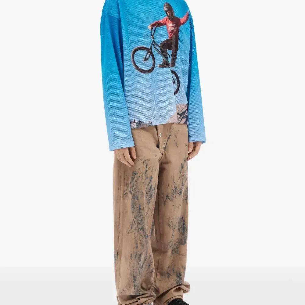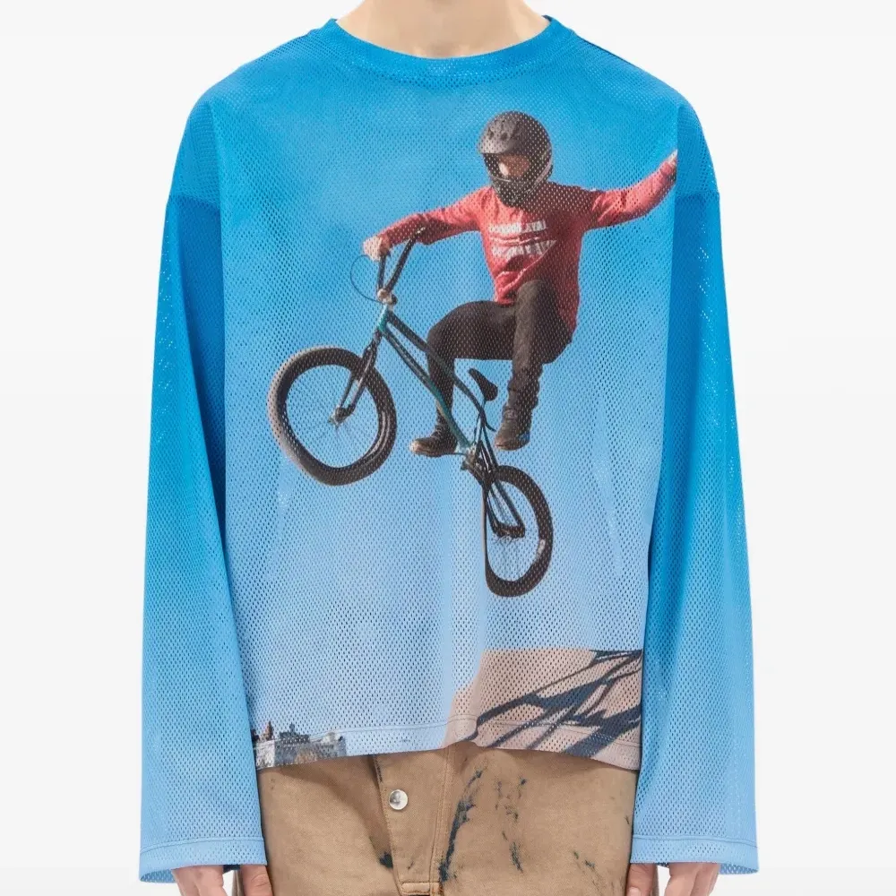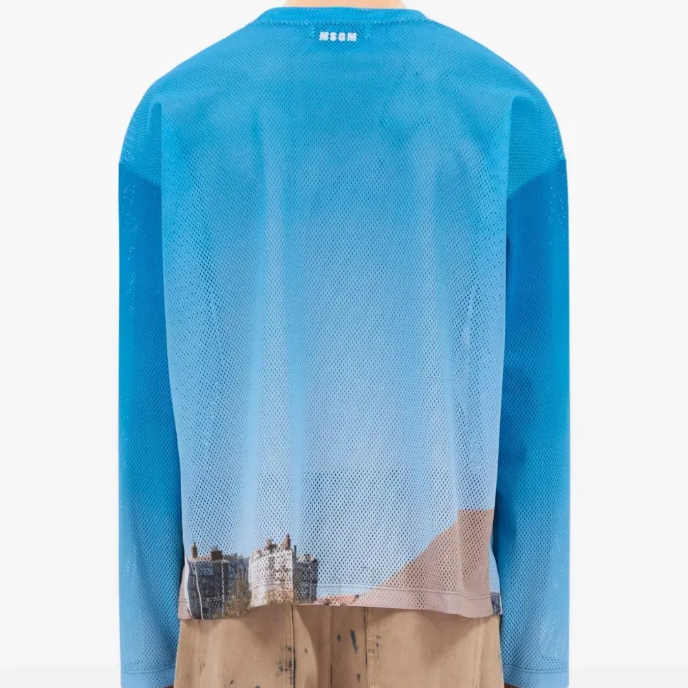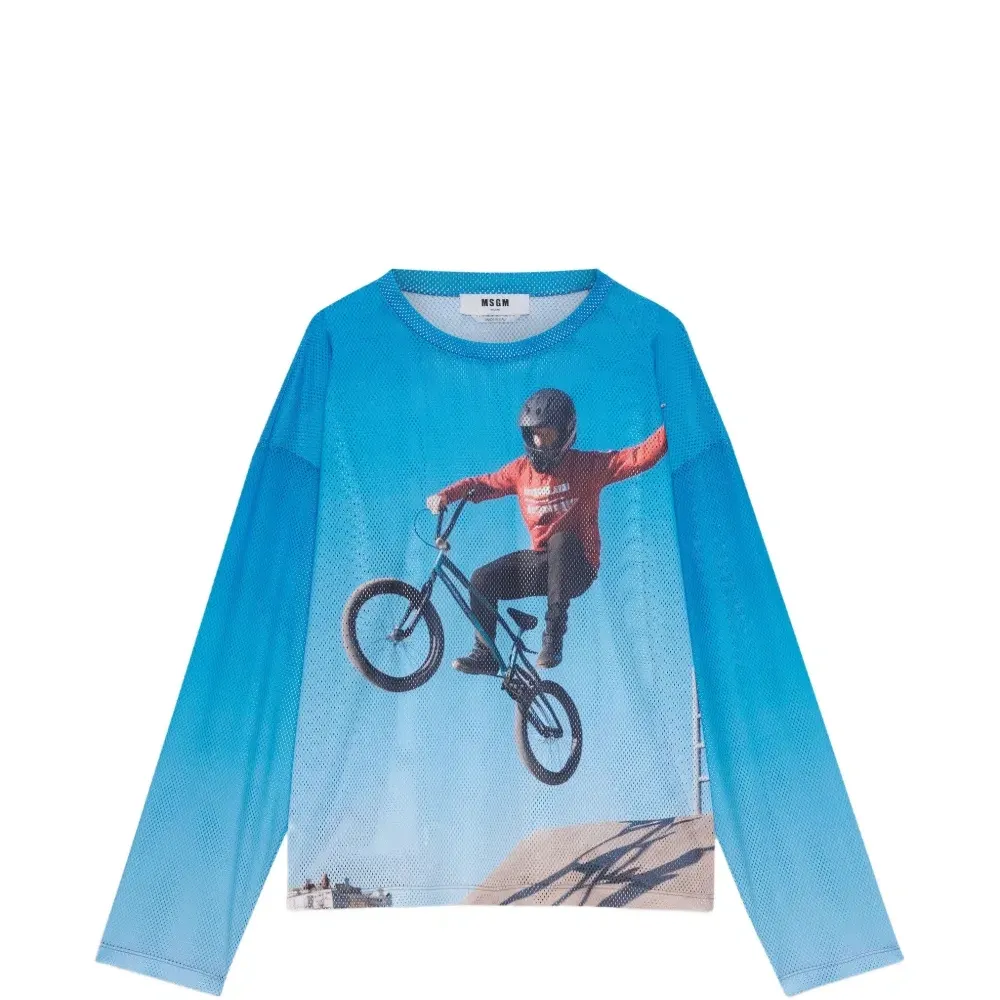 светло-голубой лонгслив с графическим принтом и круглым вырезом