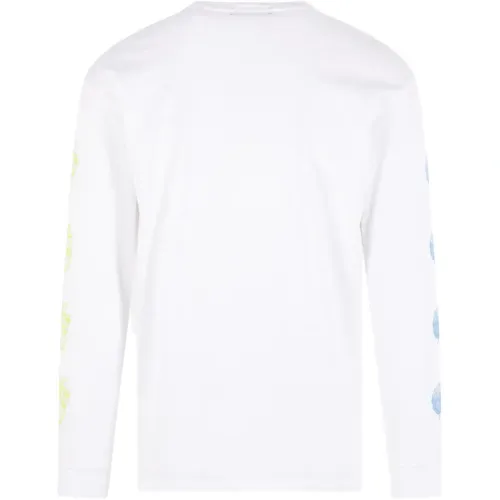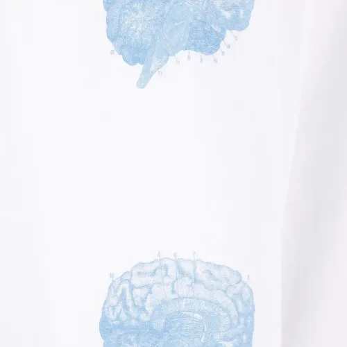 белый хлопковый лонгслив с графичным принтом, круглым вырезом и рубчатой отделкой