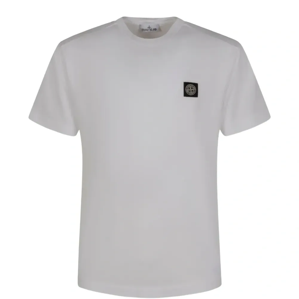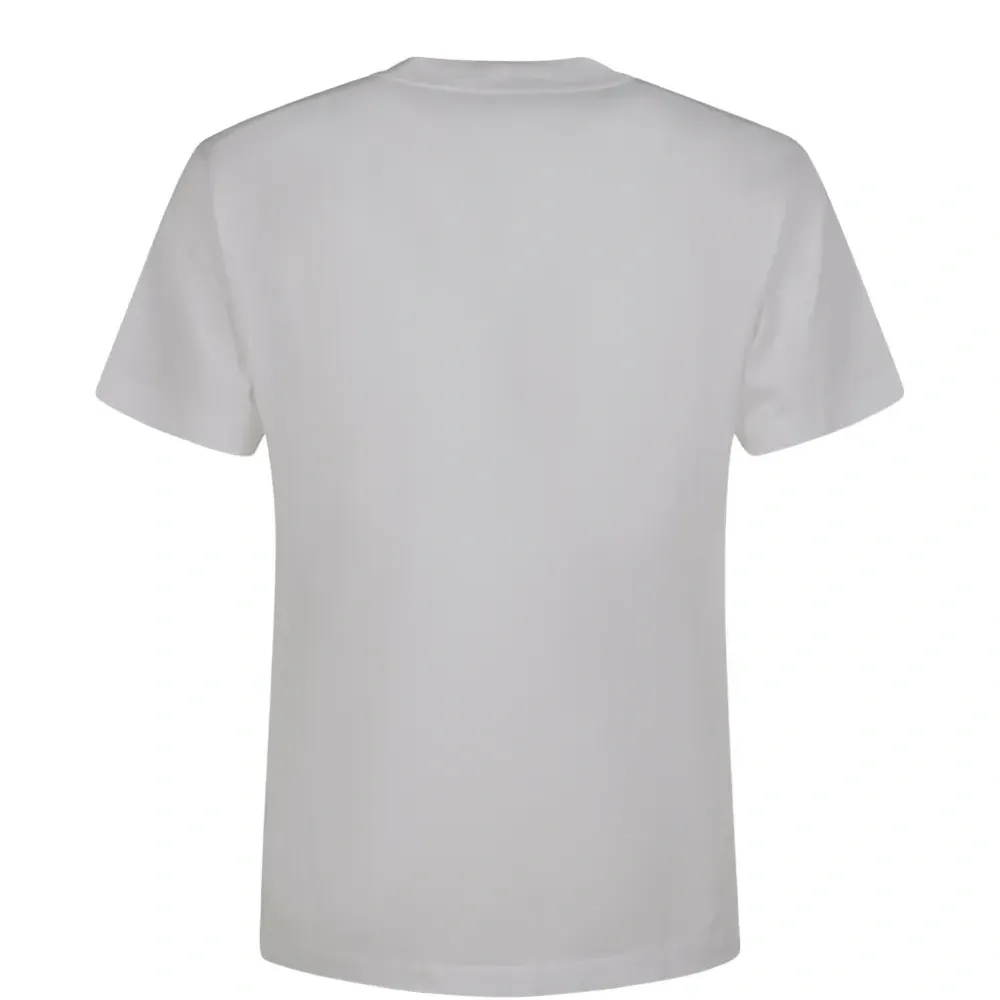 белая хлопковая футболка с короткими рукавами, круглым вырезом и нашивкой с логотипом