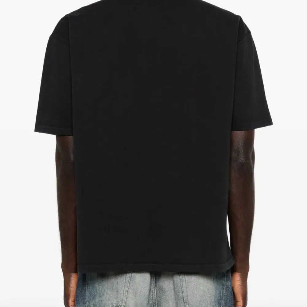черная футболка с графическим принтом, круглым вырезом и короткими рукавами