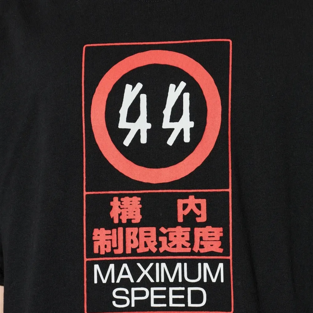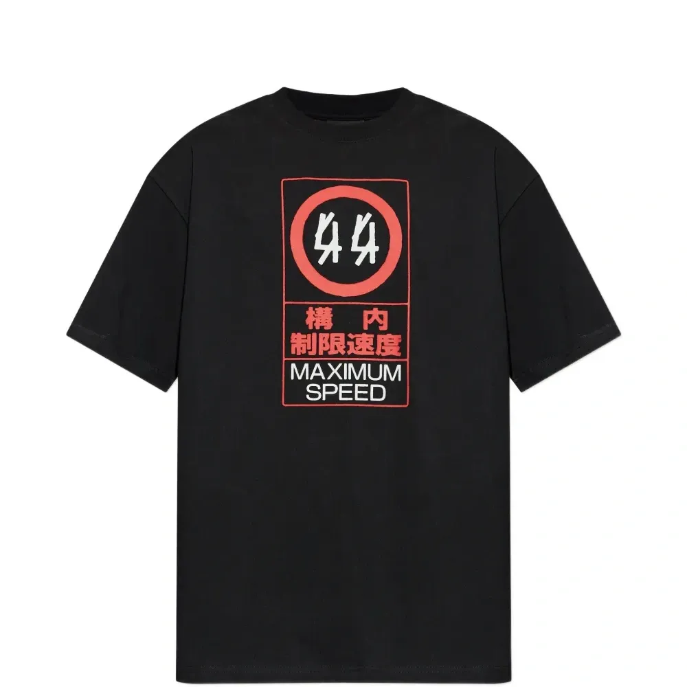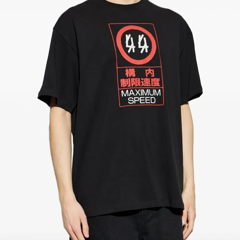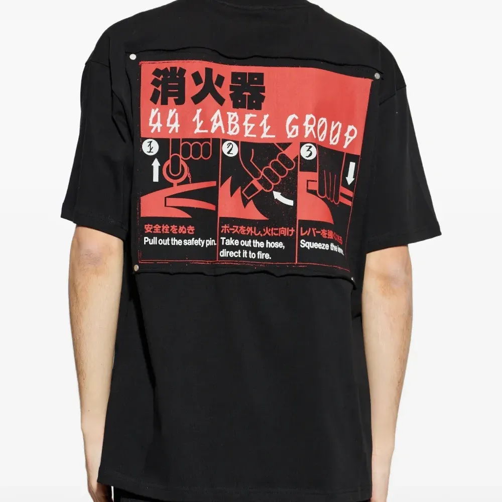 черная футболка с графическим принтом, круглым вырезом и короткими рукавами