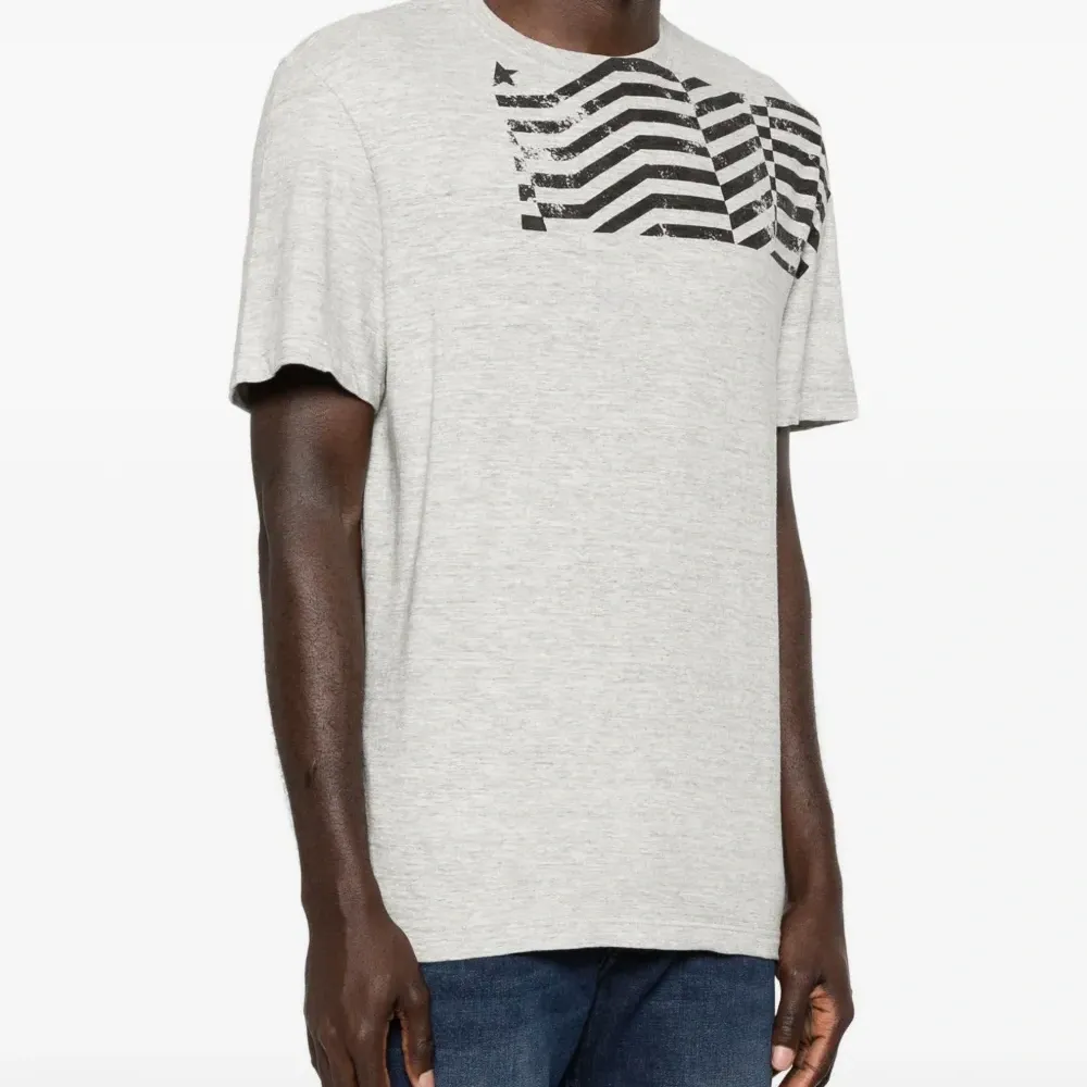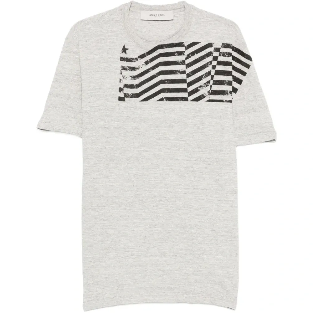 Серая футболка с графическим принтом, круглым вырезом и короткими рукавами