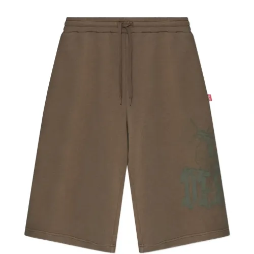 коричневые шорты с графическим принтом, шнурком для застёжки, эластичным поясом и задним накладным карманом