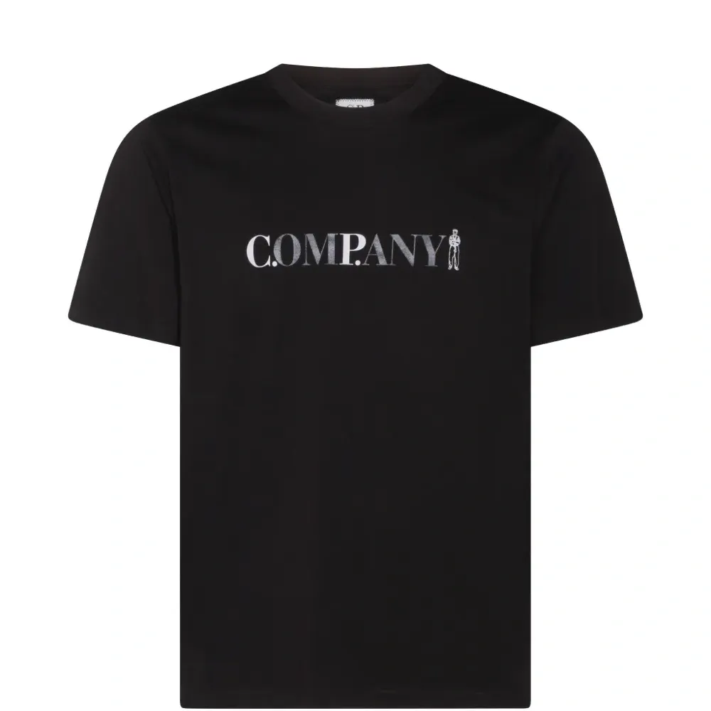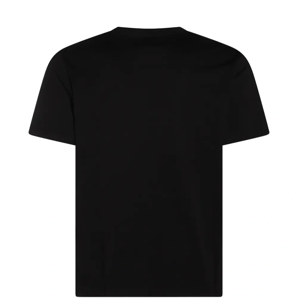 черная футболка с логотипом, круглым вырезом и короткими рукавами