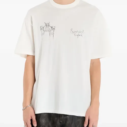 белая футболка с нарисованным вручную графическим принтом, круглый вырез, короткие рукава