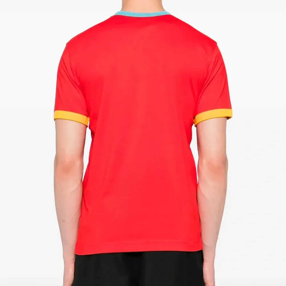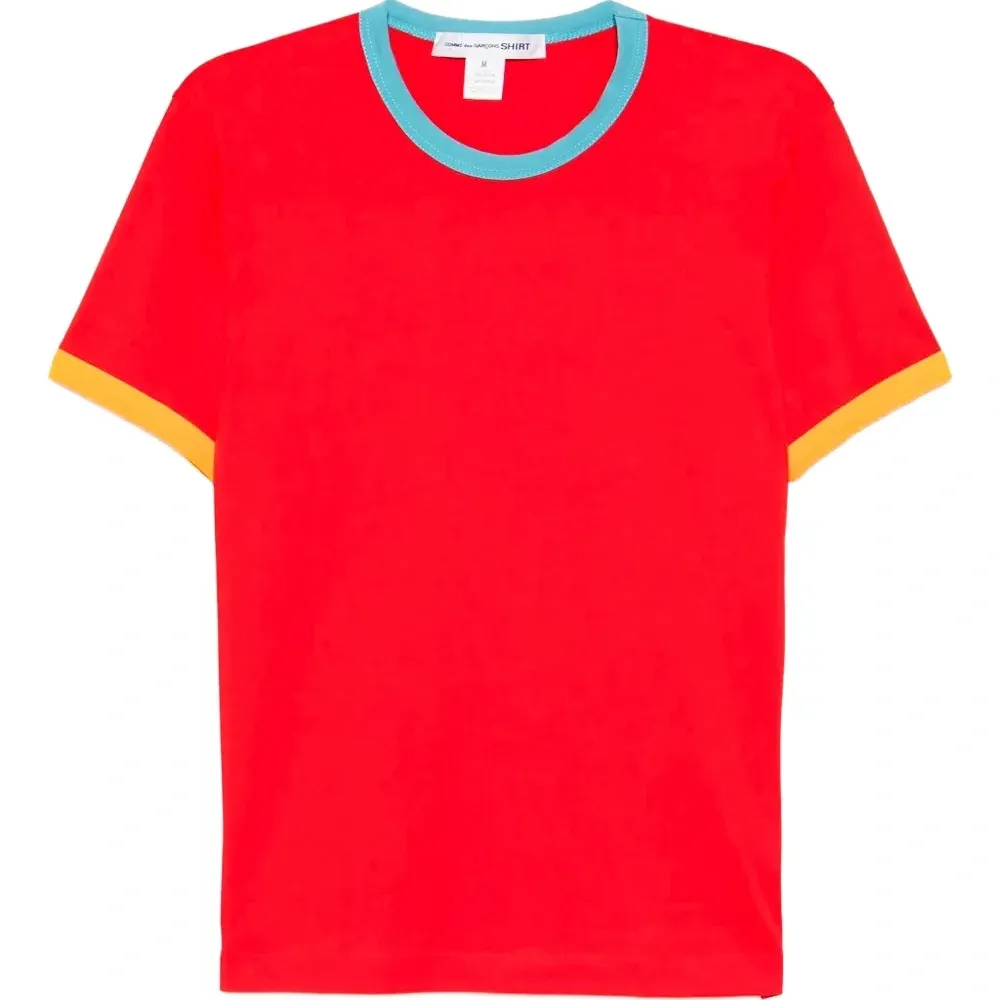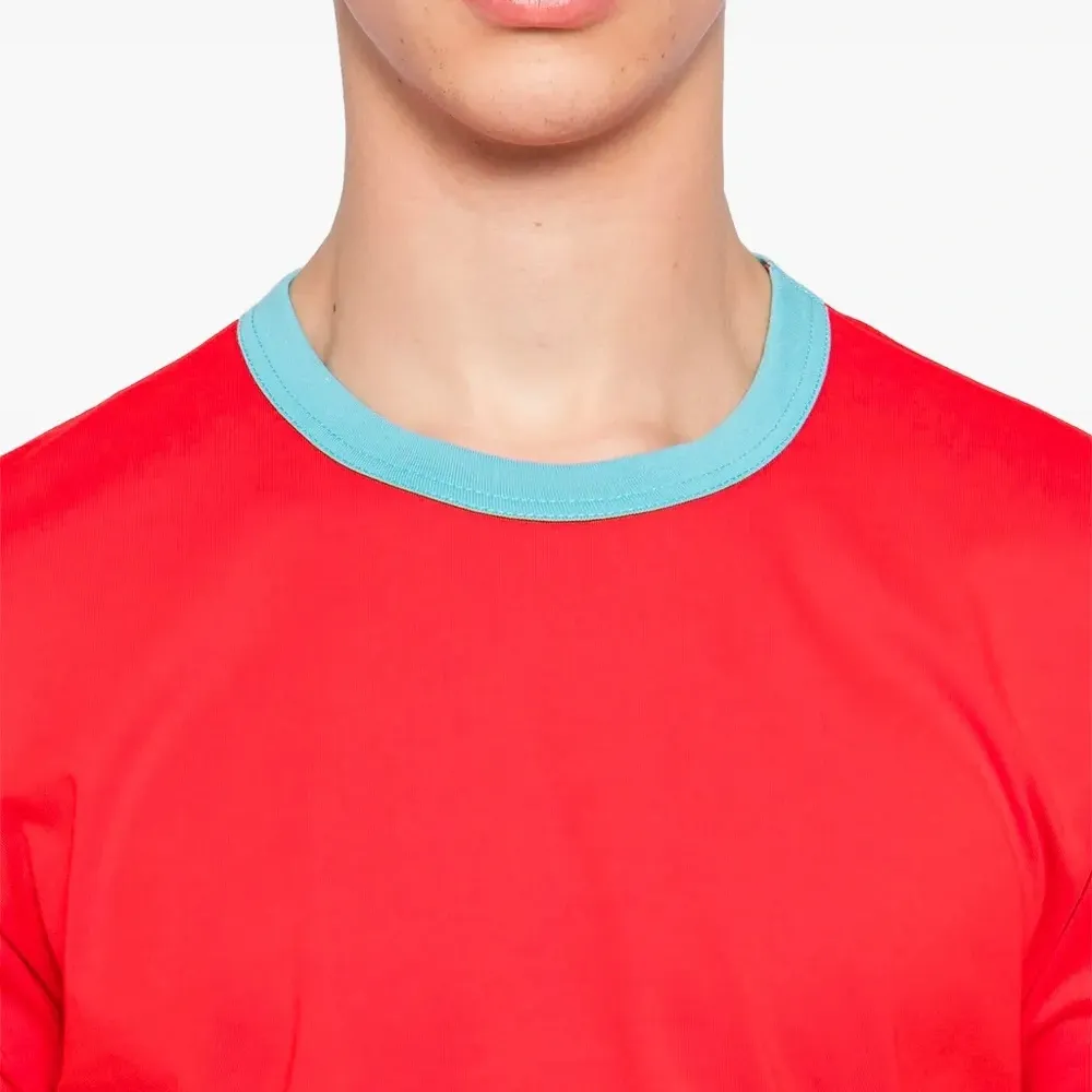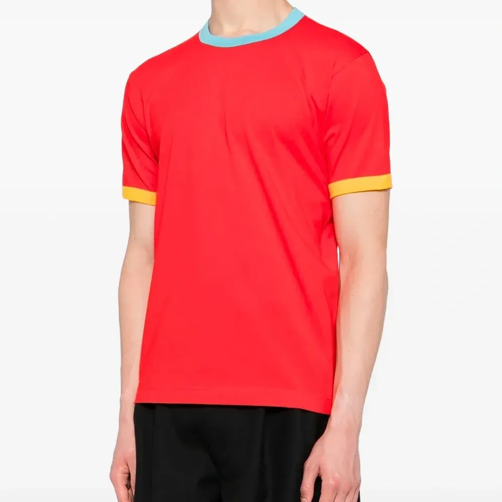 красная футболка с короткими рукавами и контрастной отделкой