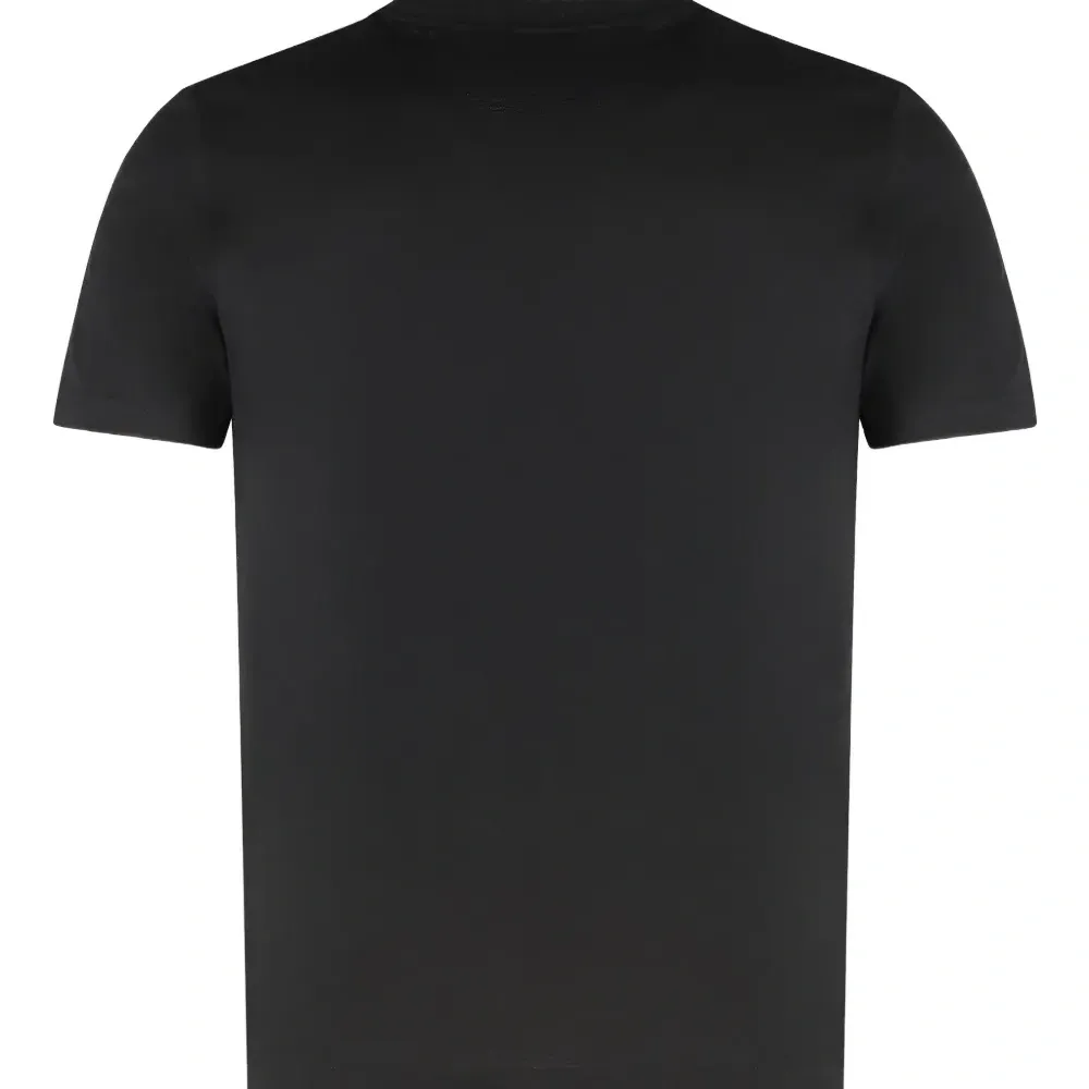 черная футболка с круглым вырезом, короткими рукавами и логотипом