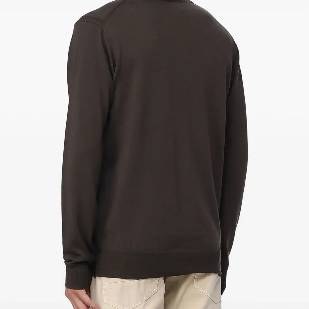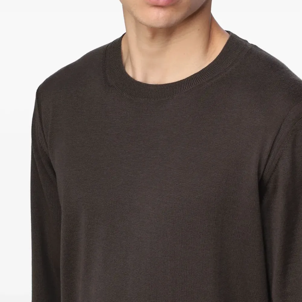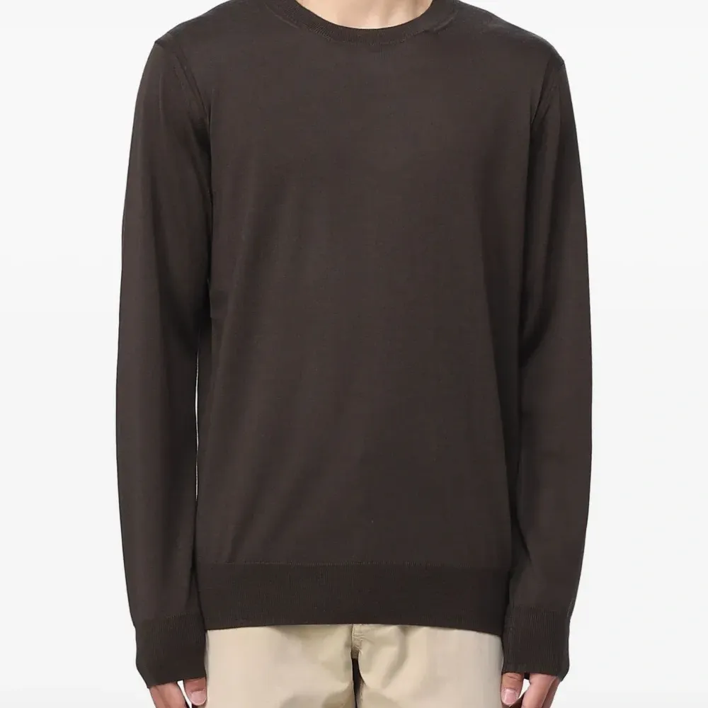 коричневый, круглый вырез, длинные рукава, ребристый нижний край, ребристые манжеты, мелкая вязка