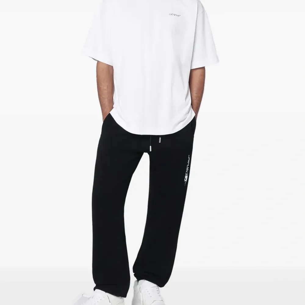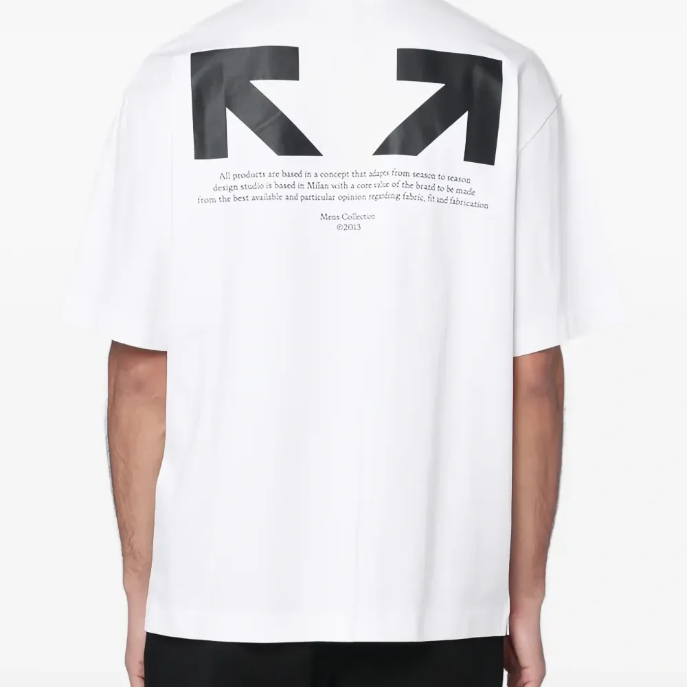 белая футболка с круглым вырезом, короткими рукавами, мотивом стрелы сзади и тональной отстрочкой