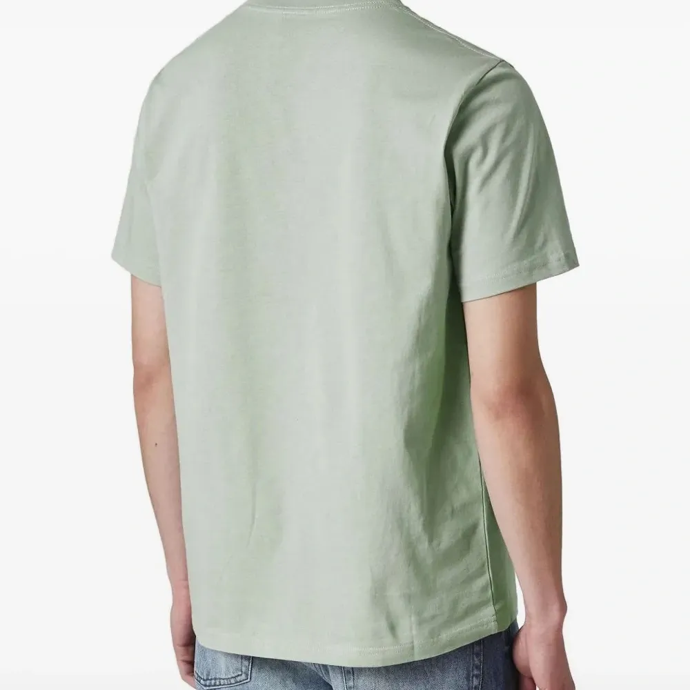 зеленая футболка с короткими рукавами, круглым вырезом и логотипом
