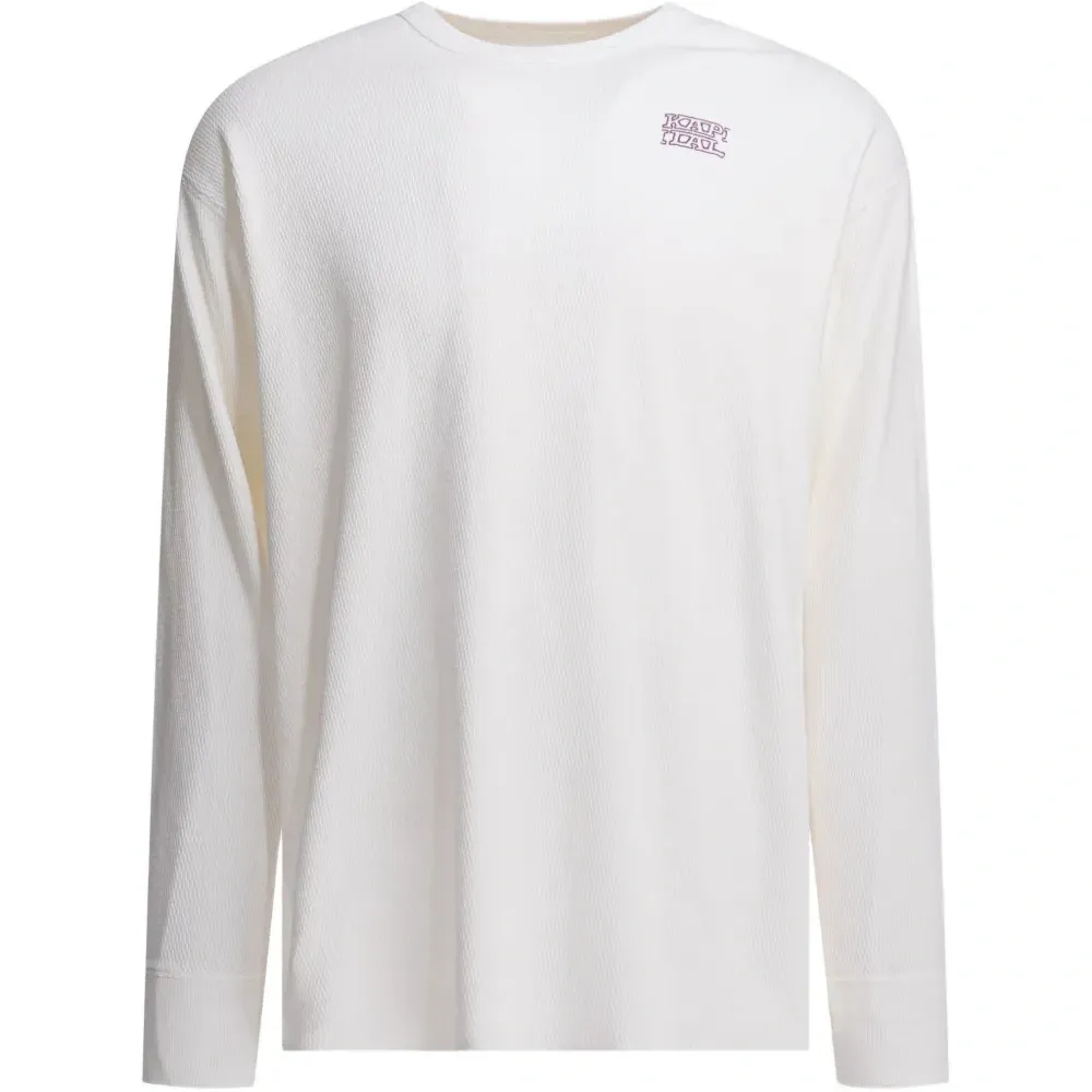 кремово-белый текстурированный лонгслив с круглым вырезом