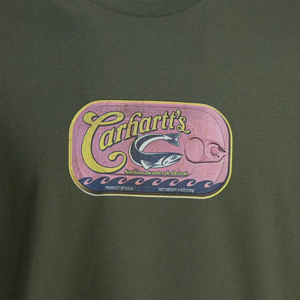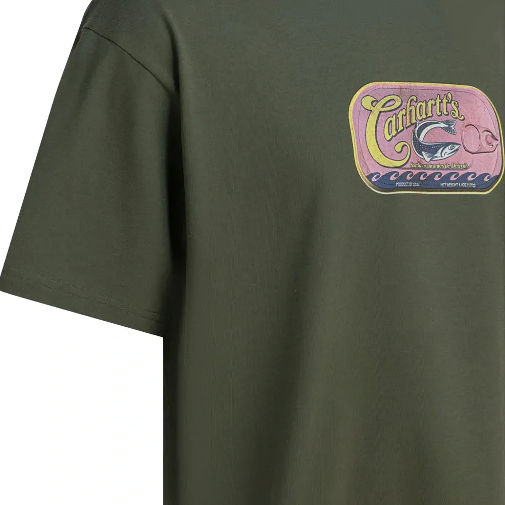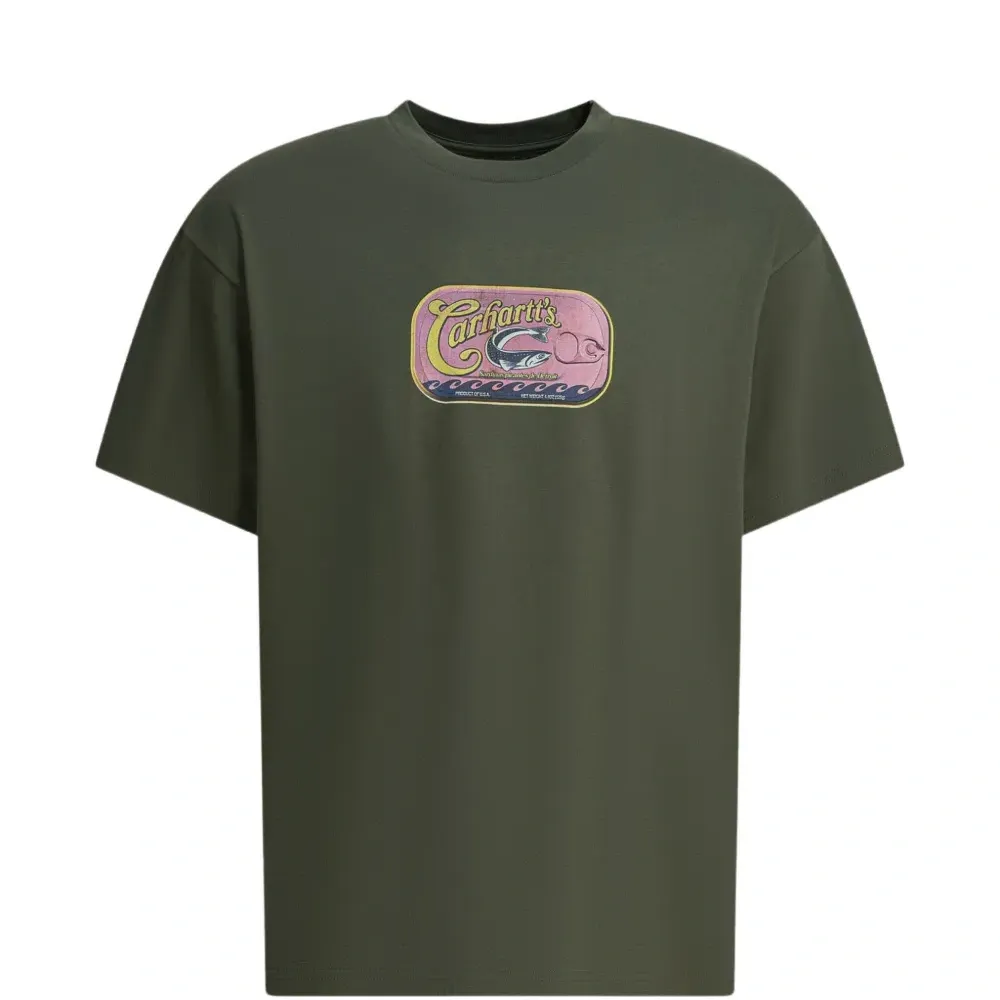 хаки с зеленым графическим принтом, круглый вырез, короткие рукава