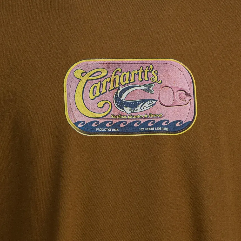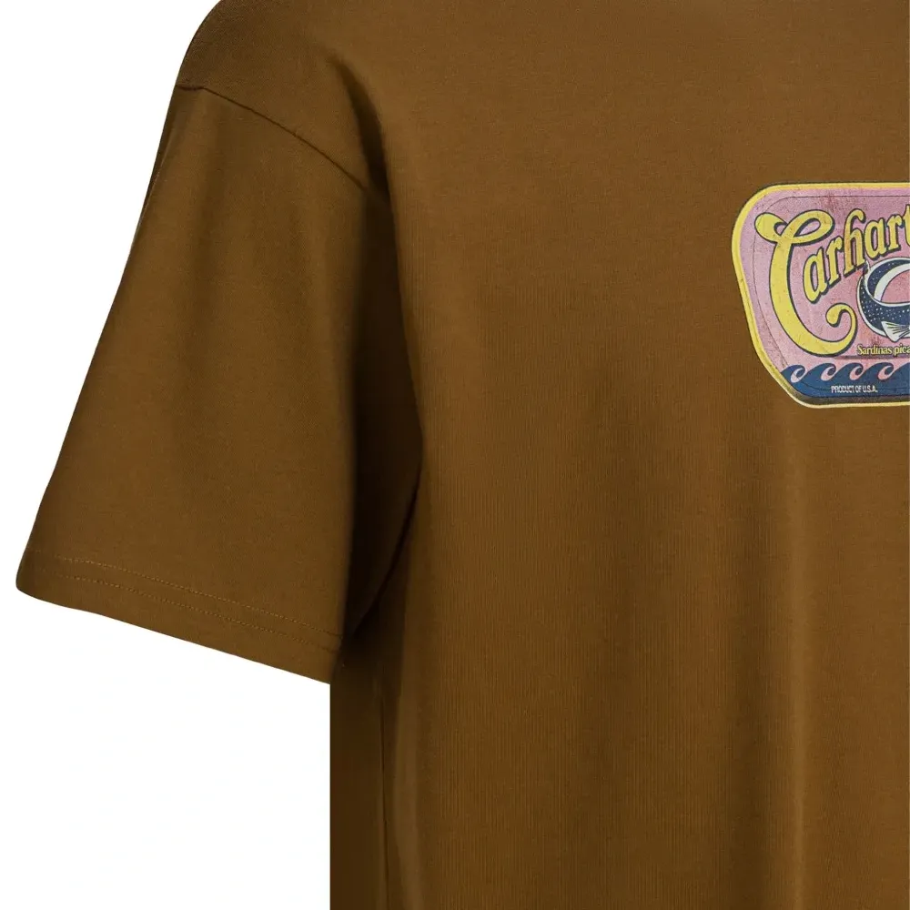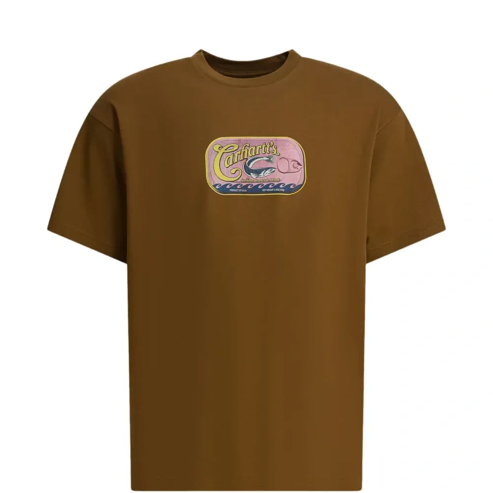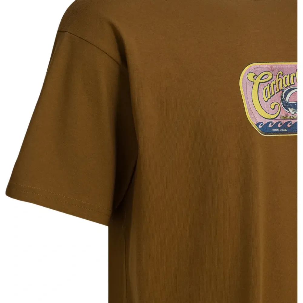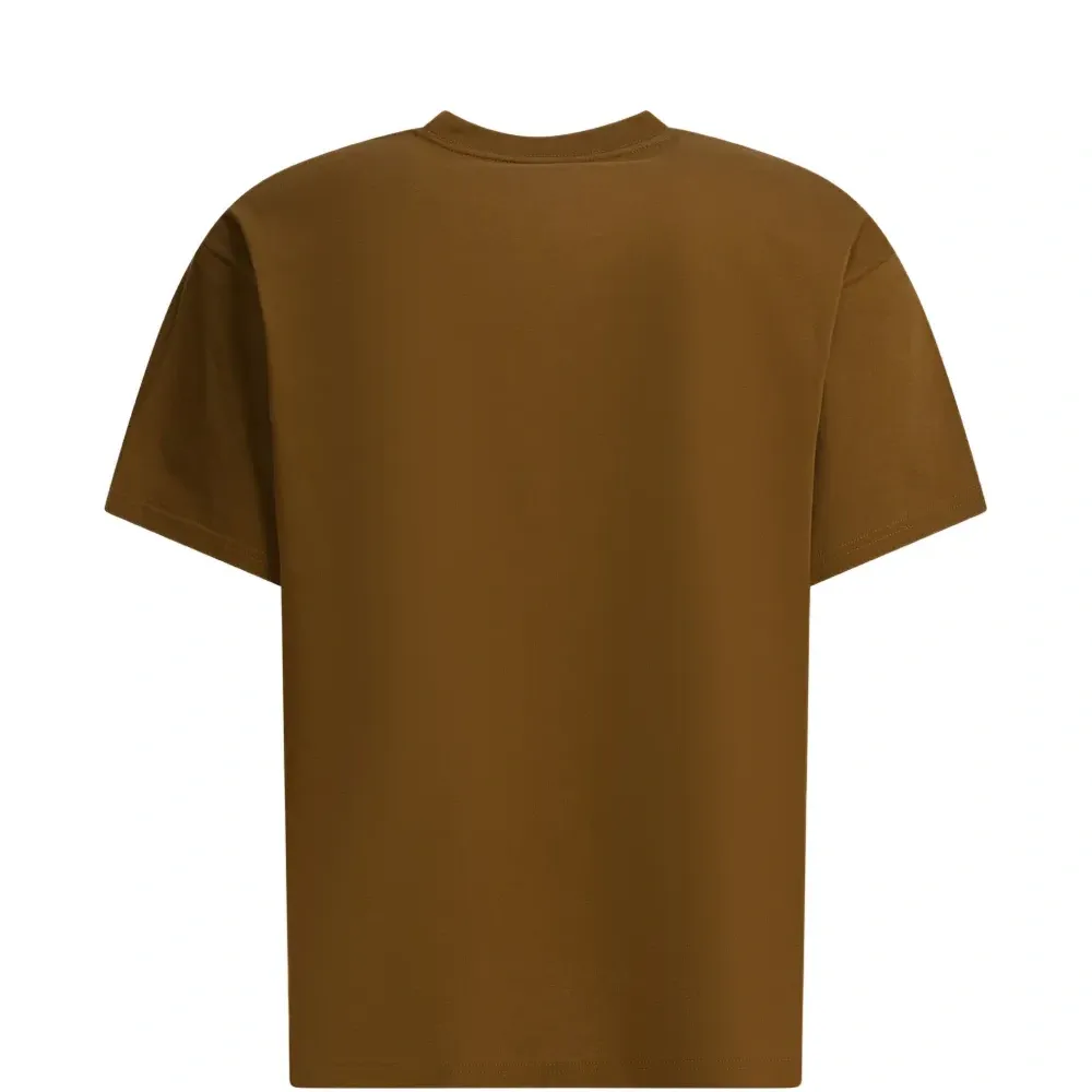 коричневая хлопковая футболка с круглым вырезом и графическим принтом