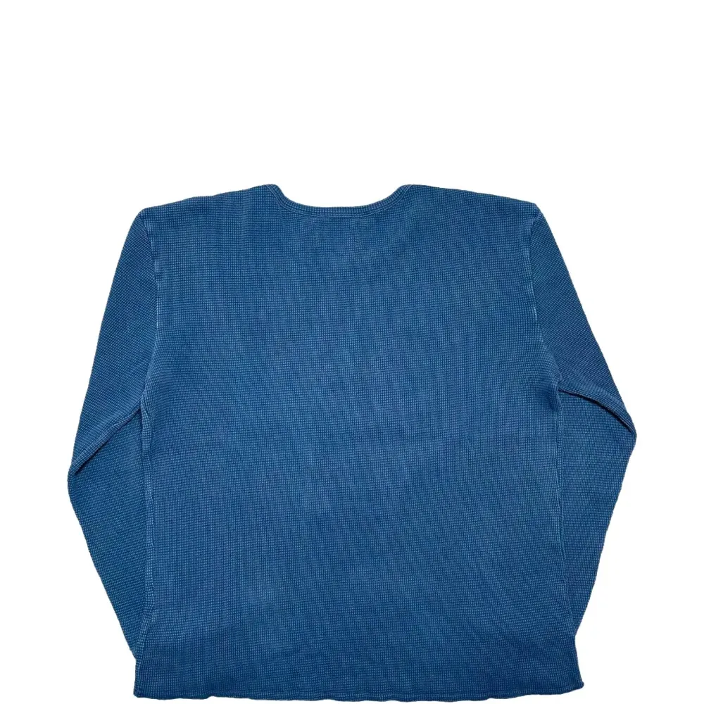 темно-синий лонгслив с графичным принтом, термостиль, вафельная вязка, с круглым вырезом
