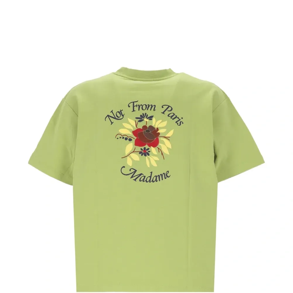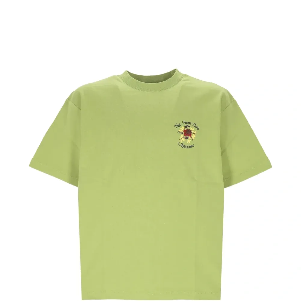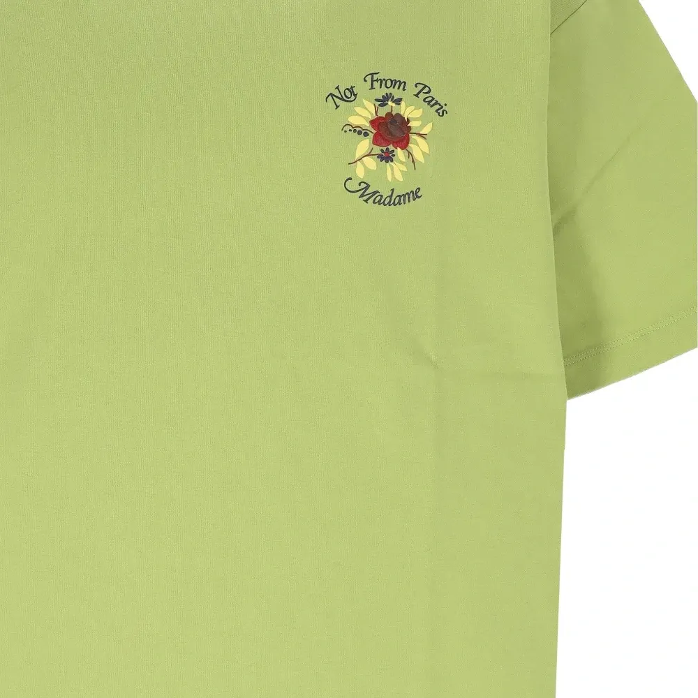 светло-зеленая футболка с цветочным принтом, круглым вырезом и короткими рукавами