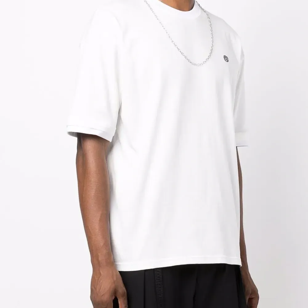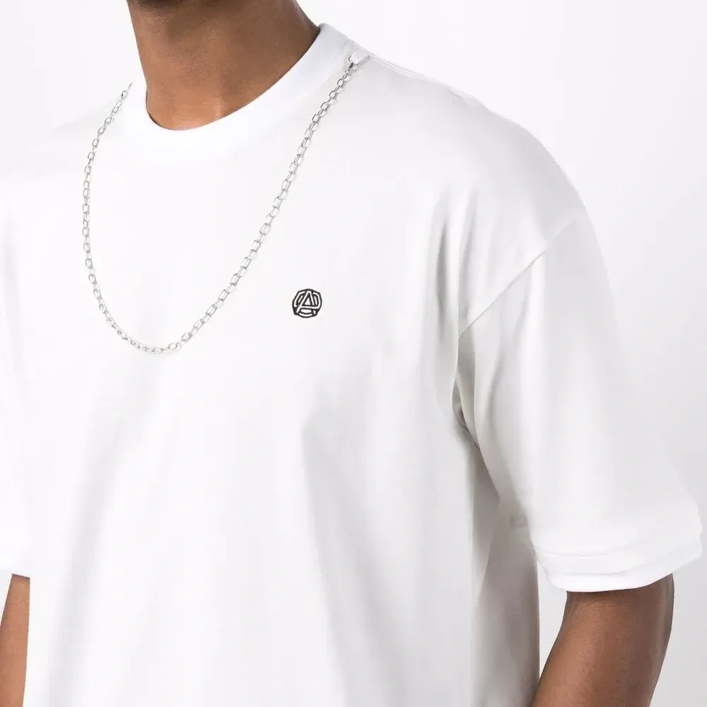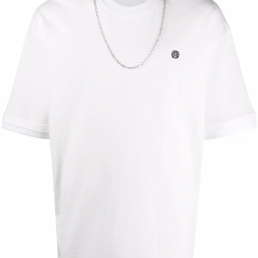 Круглый вырез, короткие рукава, манжеты в рубчик и цепочка. Цвет: белый.