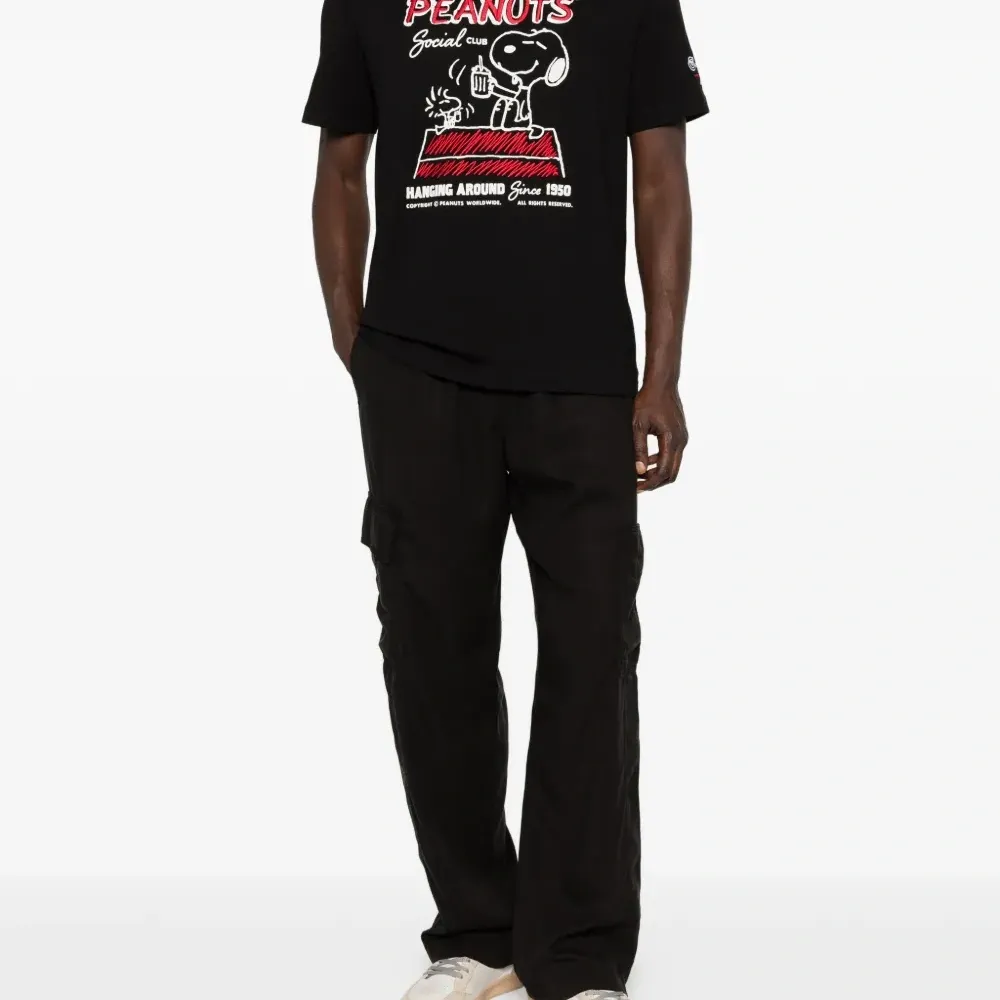 черная футболка с вышивкой Peanuts, круглый вырез, короткие рукава