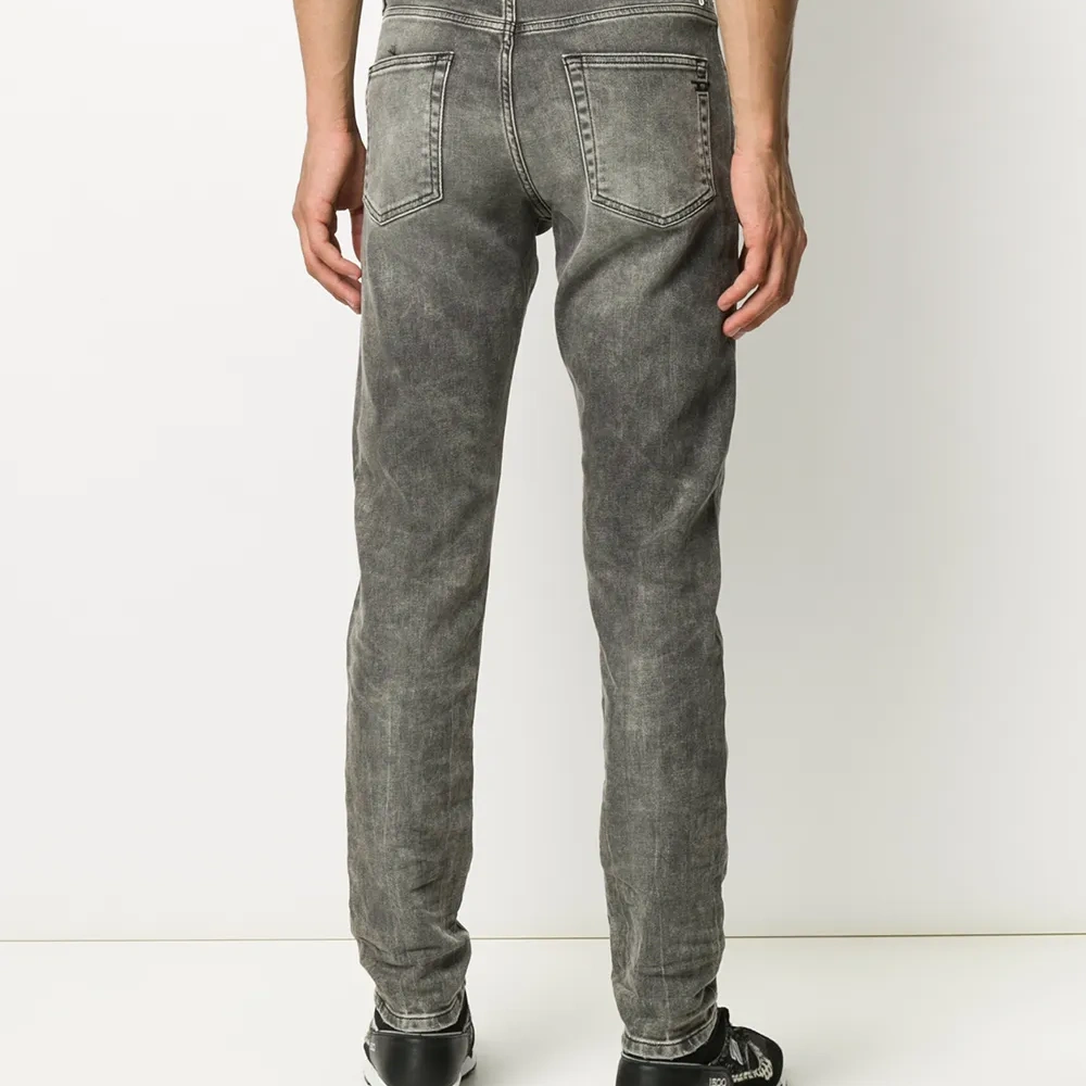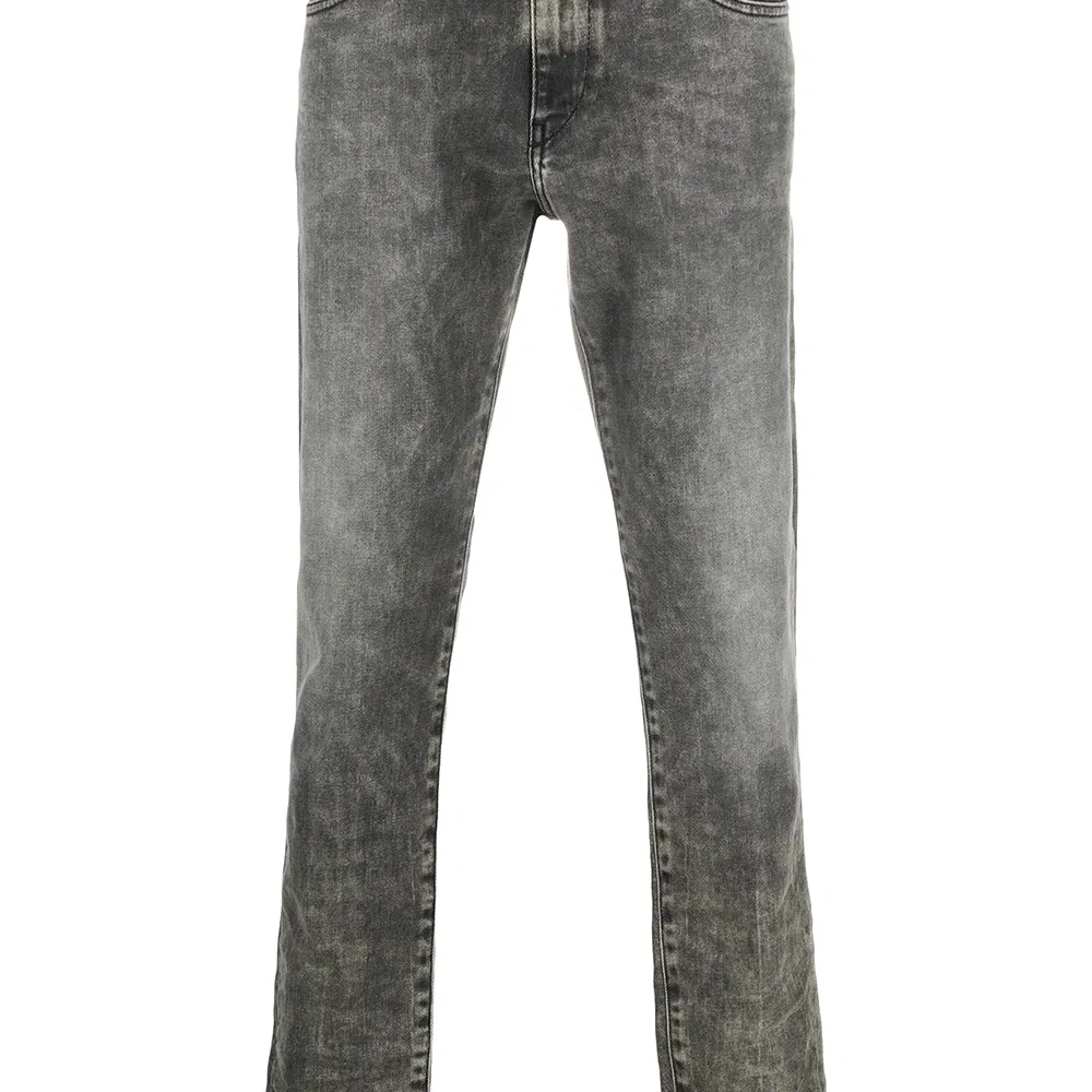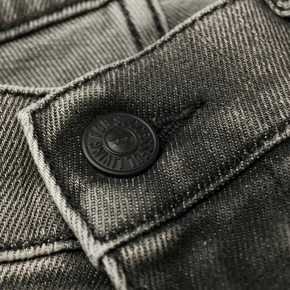 Застежка на молнии и пуговице спереди, петли для ремня, классическая пятикарманная модель, узкий крой и модель из обработанного денима. Цвет: серый.