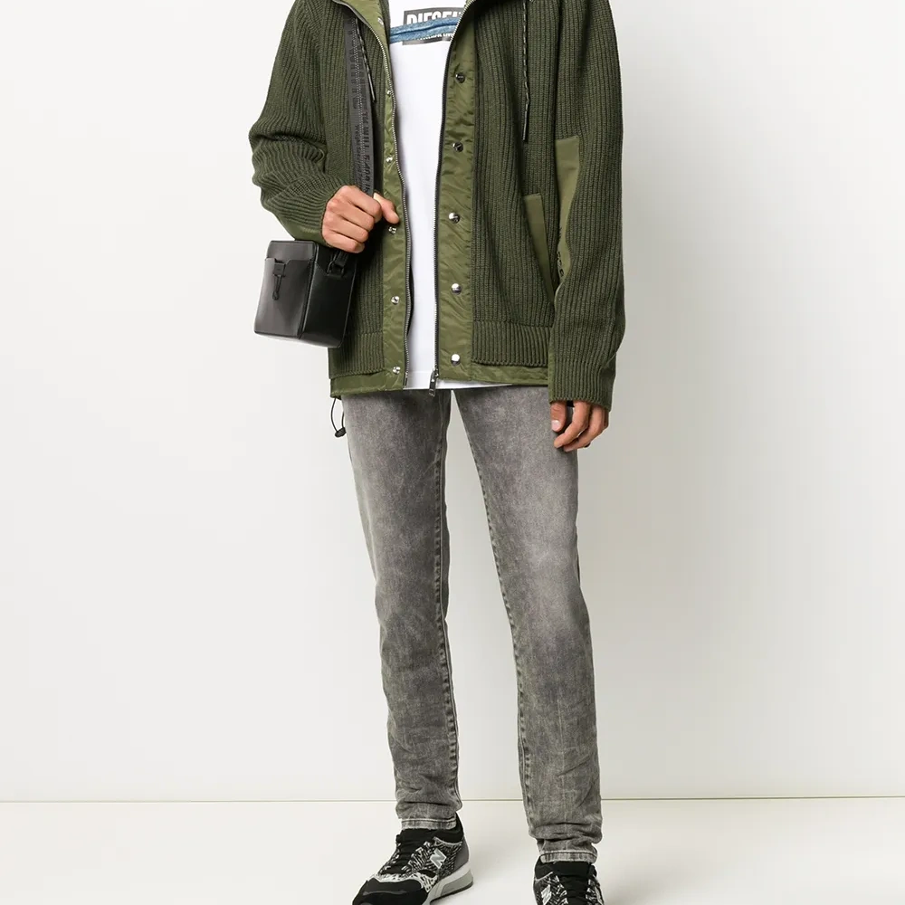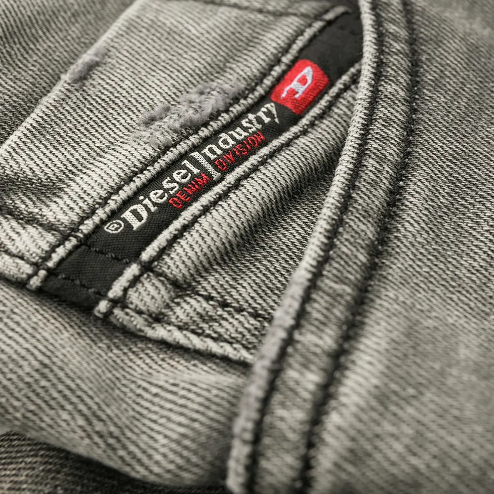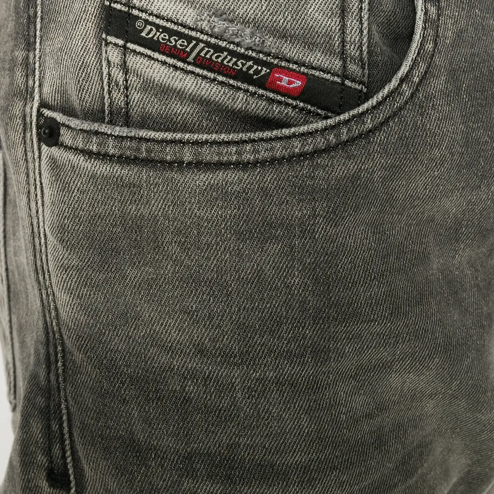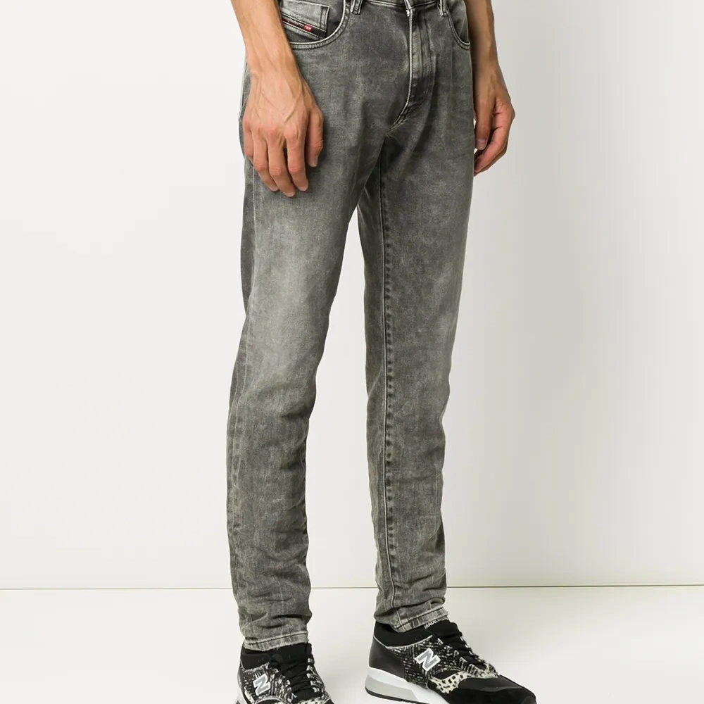 Застежка на молнии и пуговице спереди, петли для ремня, классическая пятикарманная модель, узкий крой и модель из обработанного денима. Цвет: серый.