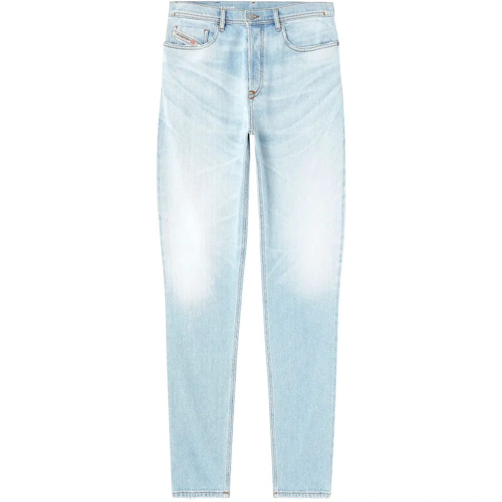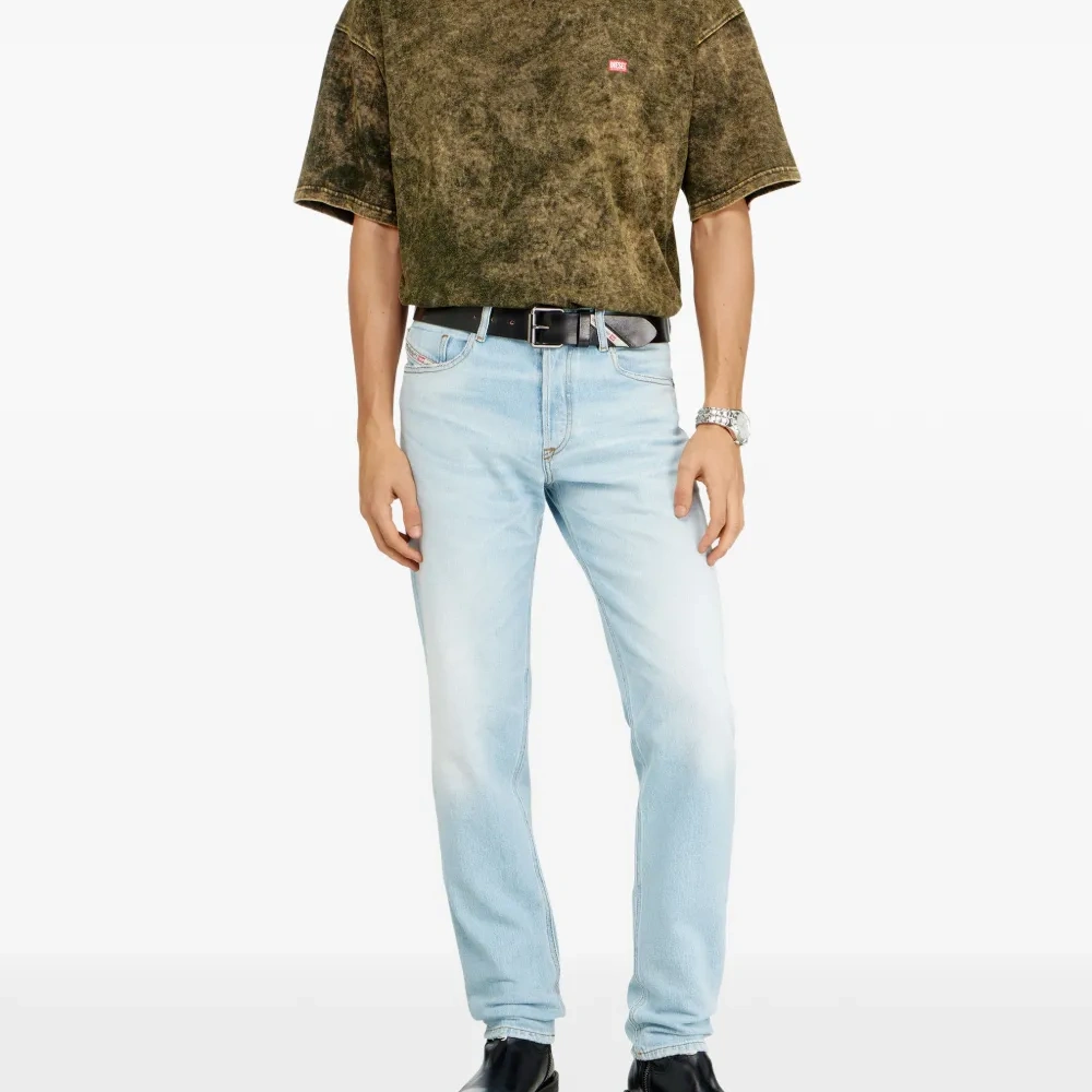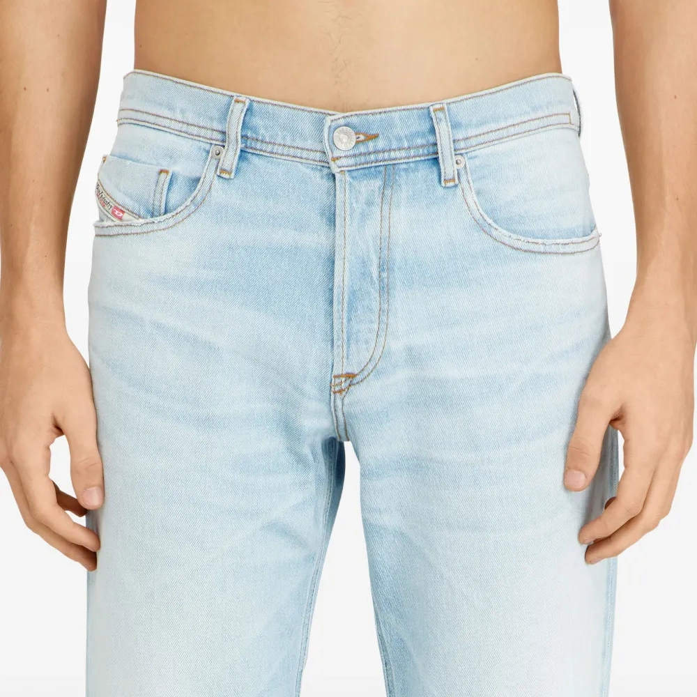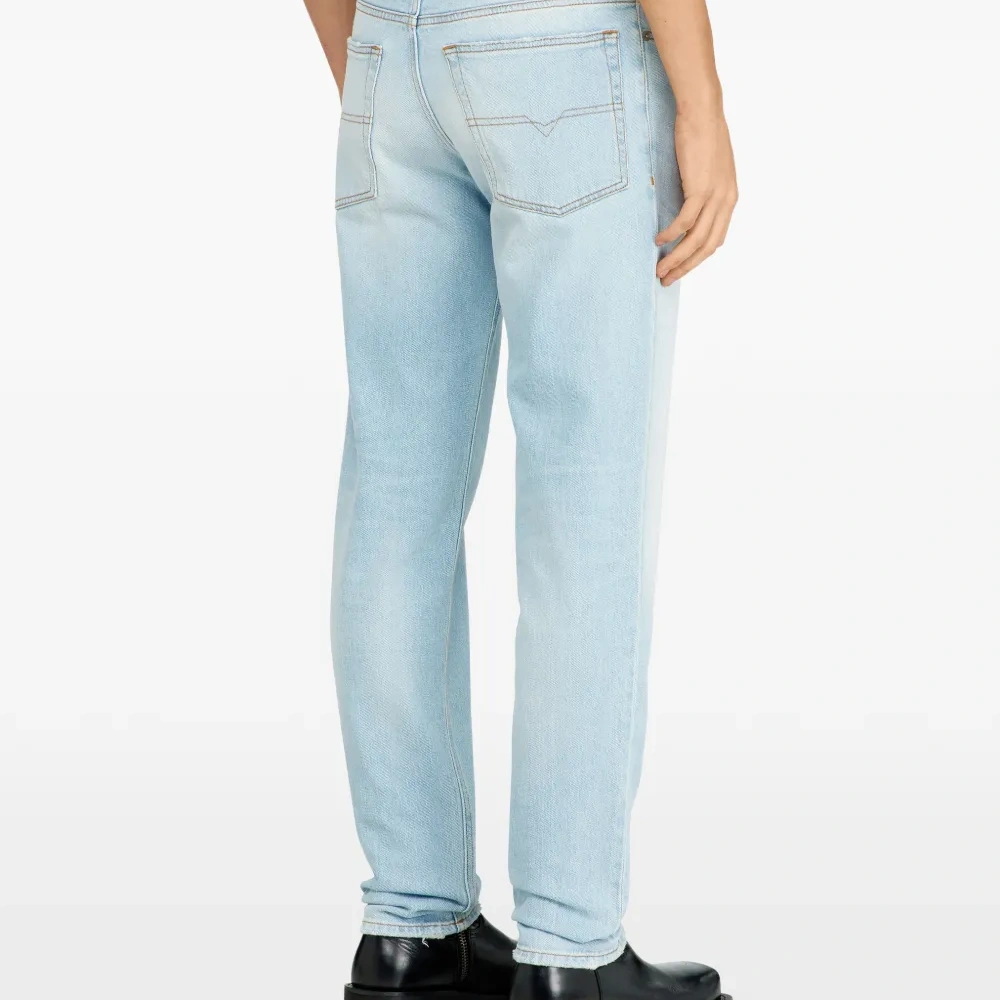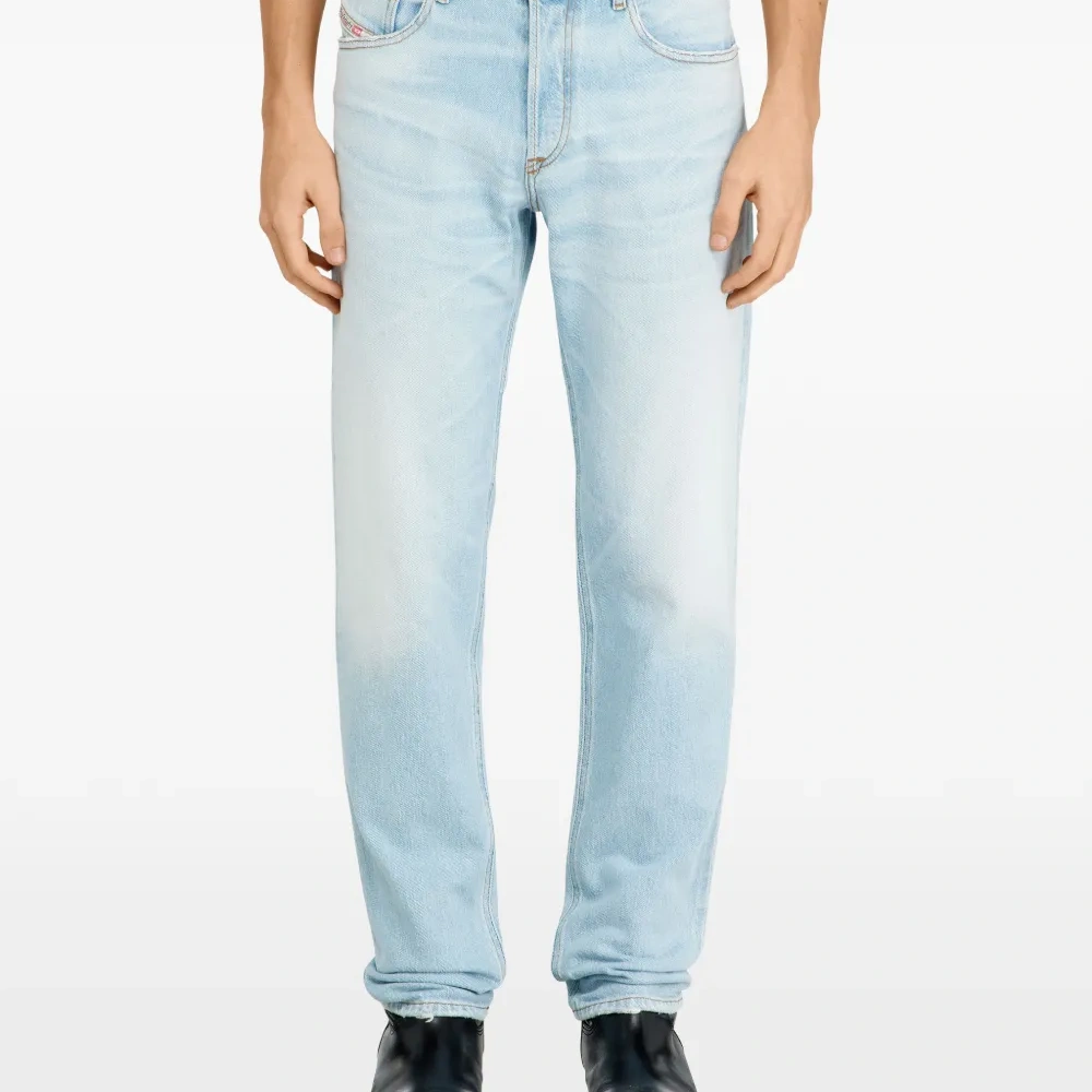 светло-голубые джинсы с застежкой на пуговицах, прямого кроя, пять карманов, средняя посадка, тональная отстрочка