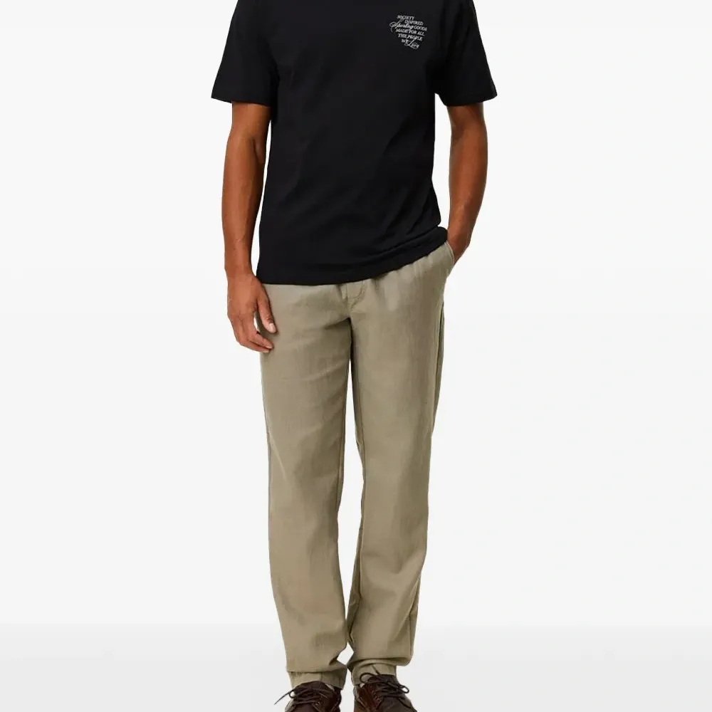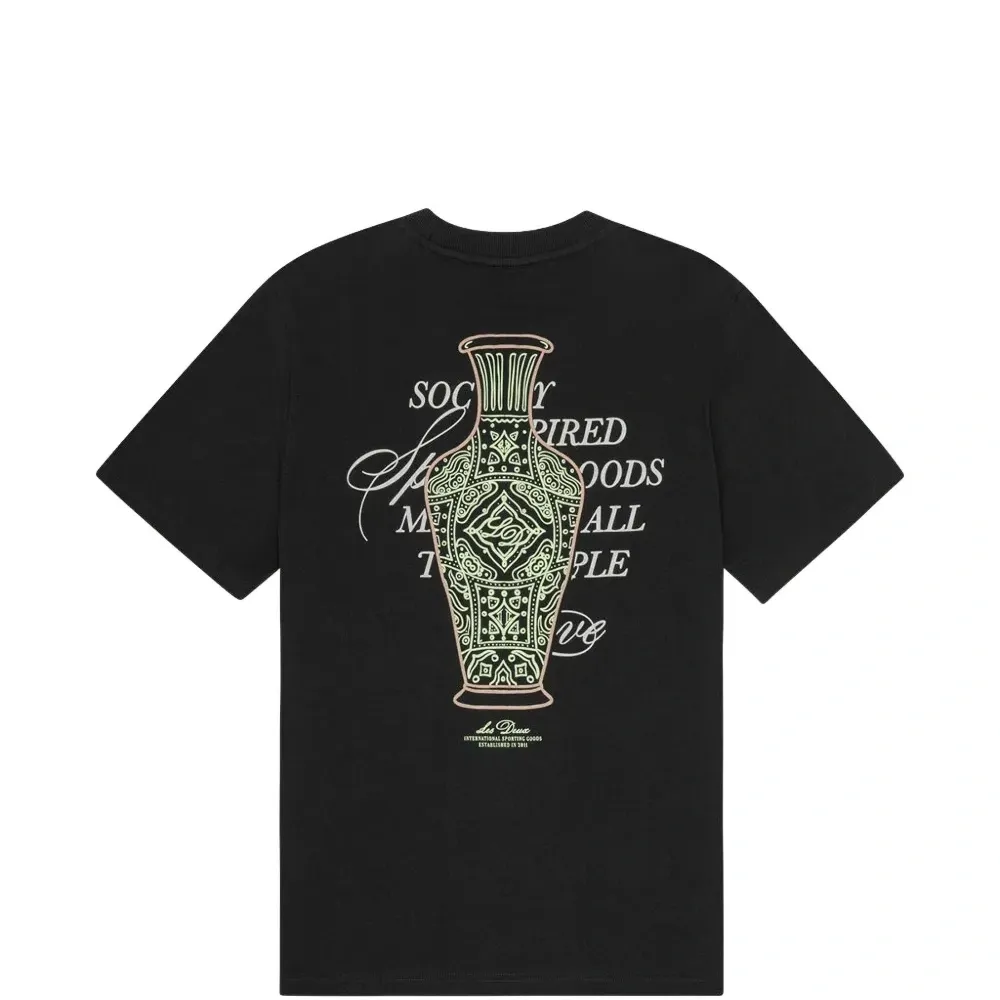 черная футболка с принтом, короткими рукавами и круглым вырезом из хлопка
